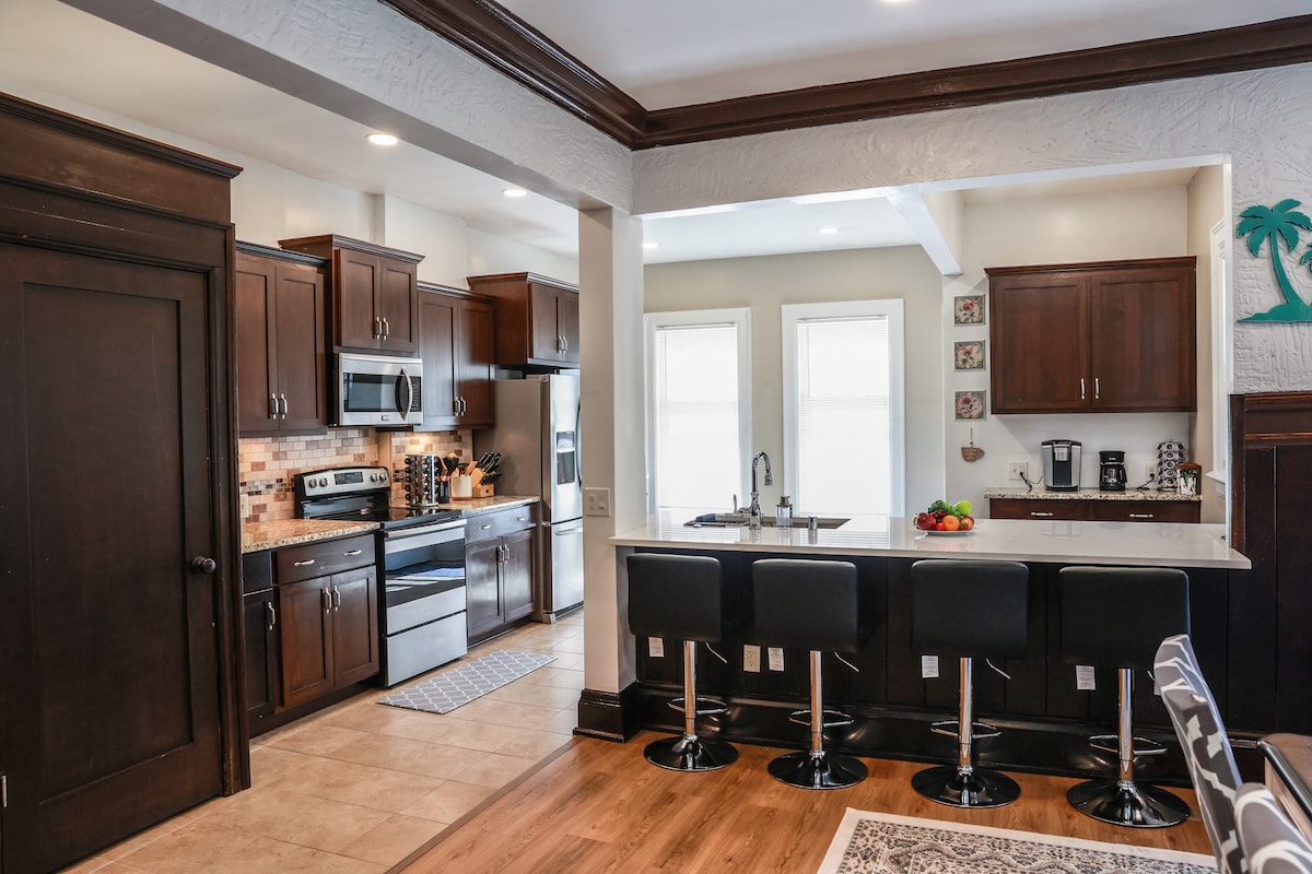 Selamat datang di Belleview House, rumah 3 kamar tidur ramah hewan peliharaan yang menyenangkan yang terletak di pusat lingkungan tinggal Murray Hill/East Side yang semarak. Kami telah merenovasi dan mendekorasi ulang seluruh rumah dan halaman belakang (November 2025)! ā Bak Mandi Air Panas - tutup selama jam tenang Wi - Fi ā Cepat ā Ruang kerja ā Smart TV ā Tempat tidur king, queen, dan twin yang nyaman ā Halaman belakang berpagar dengan meja api luar ruangan ā Halaman untuk bermain bowling, lempar tapal kuda & cornhole ā Meja makan luar ruangan ā 0,9 mil ke Pantai Bradford di Danau Michigan ā Dapur lengkap