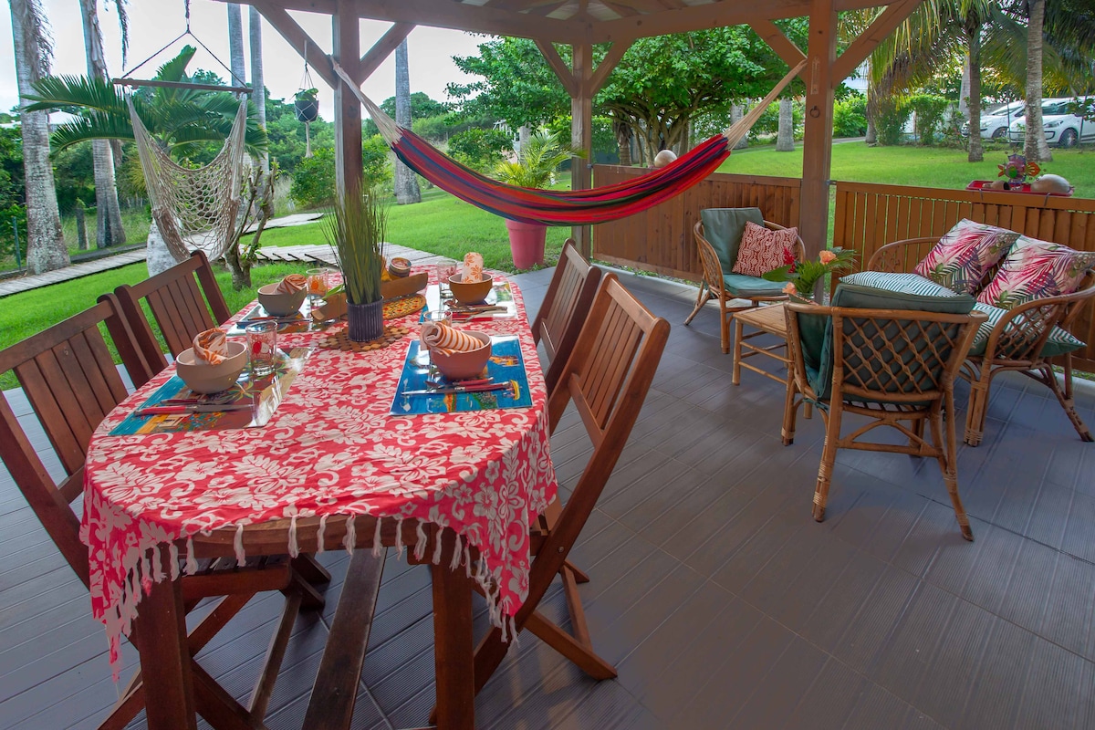Di taman yang cantik, Anda akan menemukan akomodasi baru ini yang terletak di bagian bawah vila. Dengan pintu masuk independen dan tidak terlewatkan. Tempat ini damai dan sentral karena terletak 200 meter dari primeur lokal, toko roti, apotek dan toko makanan. Pantai Bois Jolan hanya berjarak 2 km. Anda akan berada dekat dengan pantai - pantai indah desa Sainte - Anne, Caravelle atau Bois Jolan. Tempat yang luas ini cocok untuk menginap bersama keluarga atau teman - teman.