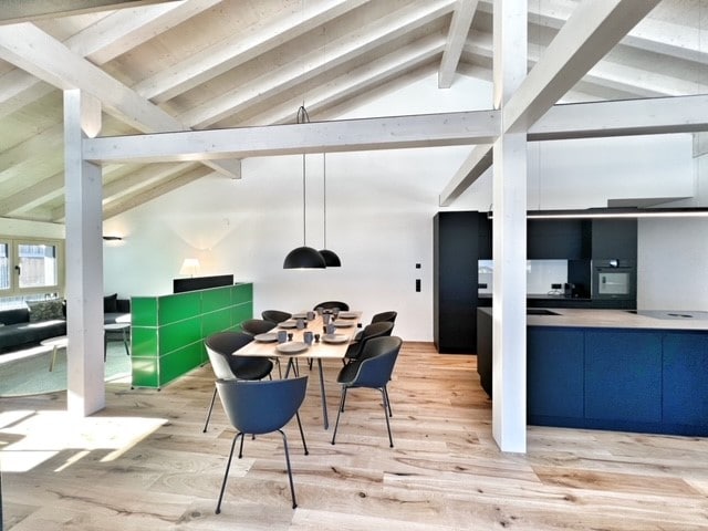 '12er Loft‘ terletak di lantai atas '12er Huus' dan mengesankan dengan ruang tamu yang luas. Kamar - kamar tinggi, rangka atap yang terlihat, dan perapian menawarkan suasana yang tak tertandingi dalam suasana rumah. Dapur berfasilitas lengkap memiliki pendingin minuman. Apartemen ini menawarkan dua kamar dengan kamar mandi pribadi. Ada juga toilet tamu dengan mesin cuci. Balkon tertutup dengan ruang duduk mengundang Anda untuk menikmati udara pegunungan yang segar dan pemandangan.