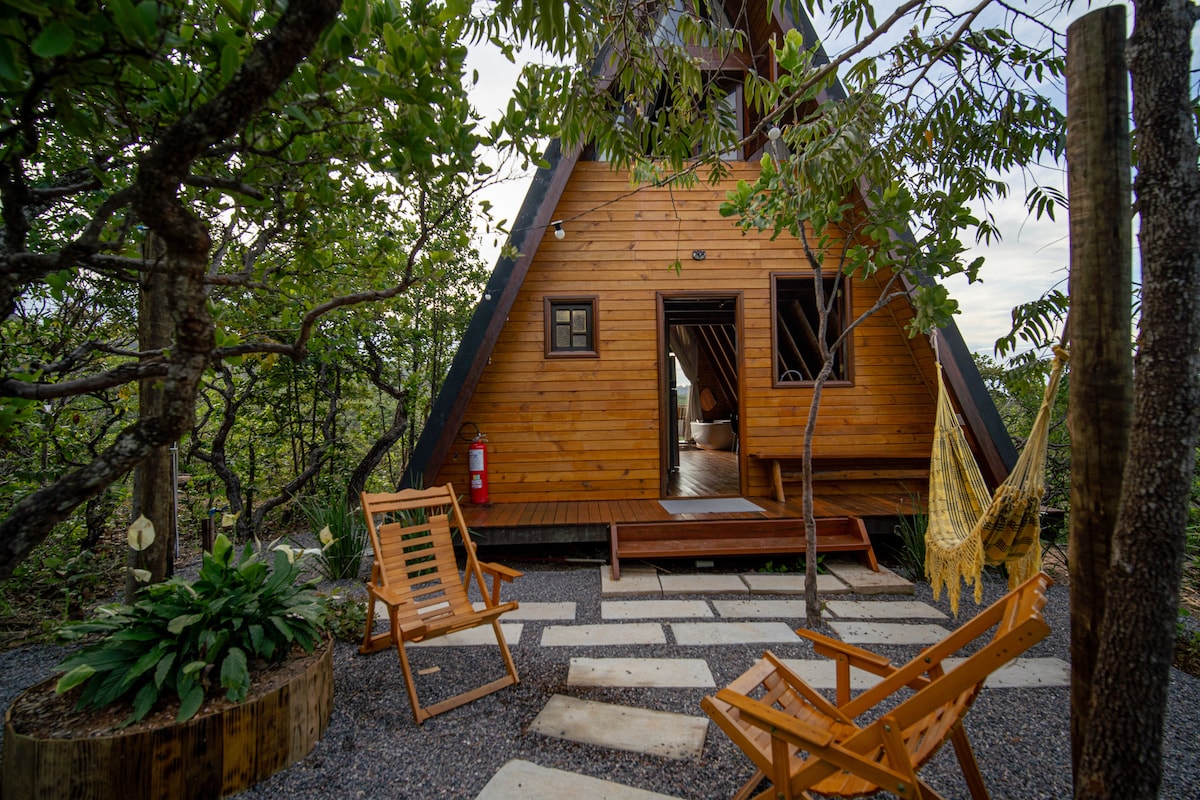 Pemandangan pegunungan dan alam hutan asli yang luar biasa dengan flora dan fauna cerrado. Koneksi 360° yang sebenarnya. Chalet kami telah direncanakan untuk pasangan yang ingin keluar dari kesibukan sehari - hari, merasakan pengalaman unik, beristirahat dan menikmati momen dua dengan privasi di tengah alam. Hanya berjarak 35 km dari Brasilia dan 1 km dari jalan tanah. PS) Jika tanggal Anda dipesan, kami juga memiliki Encanto da Serra, pilihan lain yang dapat Anda lihat dengan mengeklik profil saya.