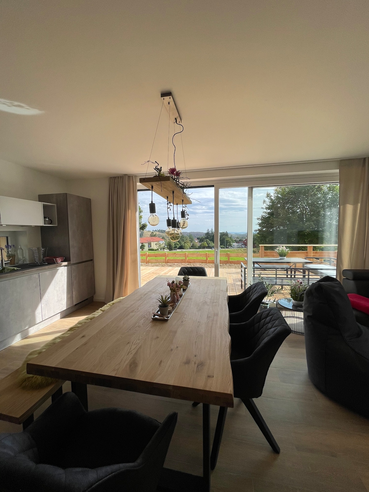 Ferienhaus Mountain View six50 memenuhi semua keinginan untuk liburan yang menenangkan dan penuh peristiwa. Di lantai dasar terdapat ruang tamu yang luas.- Area makan dengan perapian dan teras kayu. Kamar lain dengan sauna dan pancuran, serta toilet tamu dan ruang utilitas besar dengan mesin cuci. Melalui tangga Eichent yang besar, Anda sampai ke lantai atas dengan tiga kamar tidur dan kamar mandi mewah Bawa seluruh keluarga ke rumah luar biasa ini dengan banyak ruang untuk bersenang - senang dan hiburan.