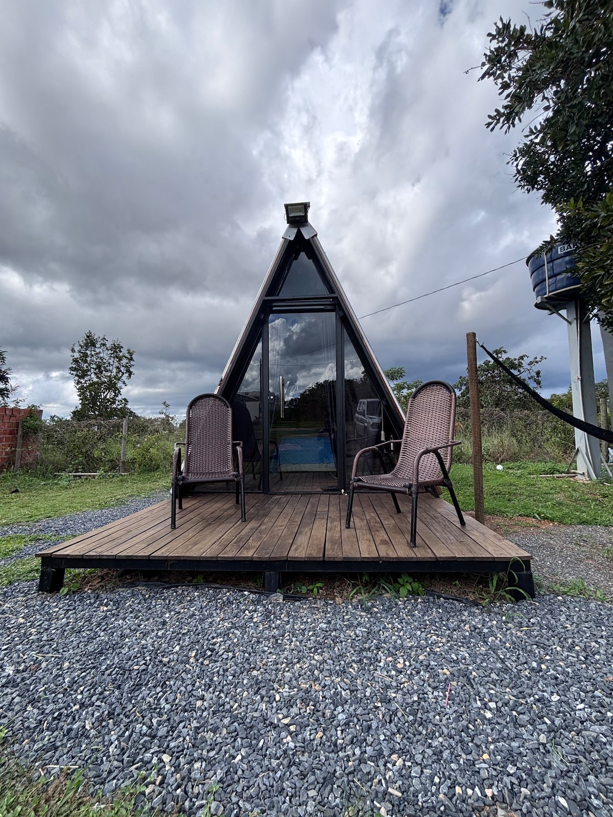 Desconecte-se de tudo ao ficar sob as estrelas. Perfeito para casais que buscam uma escapada aconchegante e viver uma aventura, o Mini Chalé Suíço com 5m2 combina charme e privacidade em um espaço compacto e acolhedor. Com design em estilo A-frame, esse chalé oferece uma cama de casal confortável, decoração rústica e um ambiente encantador em meio à natureza da pousada. Ideal para momentos inesquecíveis a dois, é a escolha certa para quem deseja uma experiência única em um cenário natural.