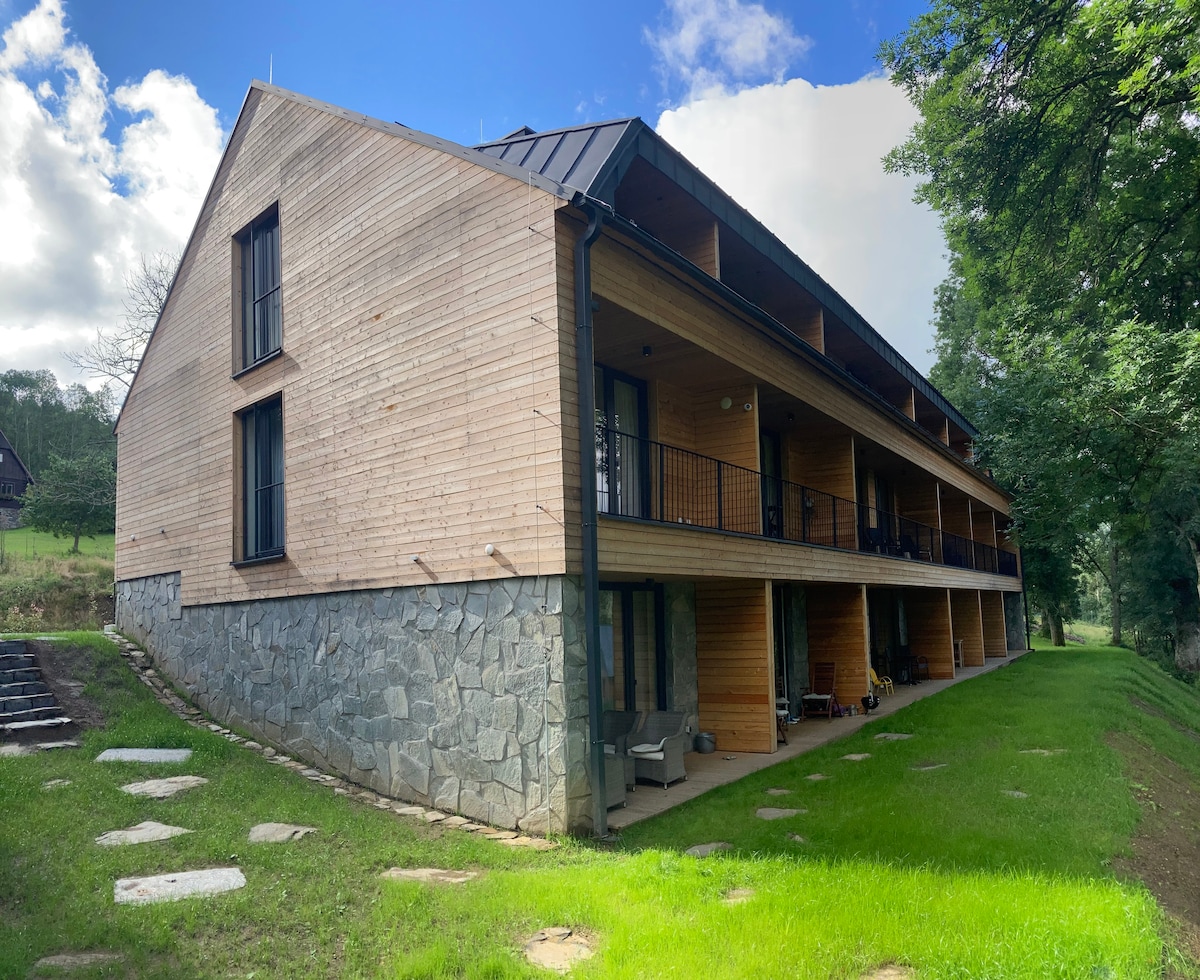 Cottage Lookout dengan jendela panorama dan teras yang luas menyerupai perahu yang mengapung di atas lanskap. Aroma kayu, sofa, dan kompor perapian dengan dapur yang nyaman membentuk unit yang disempurnakan. Tempat ini nyaman mengakomodasi 3 orang dewasa atau 2 orang dewasa atau 2 orang dewasa dan 1 anak. Kami membangun rumah - rumah dengan cinta, penekanan pada desain modern minimalis, dengan harmoni alam. Terletak di atas lembah Šumava yang indah. Datang dan nikmati kenyamanan dan ketenangan dengan pemandangan perbukitan di sekitarnya yang menakjubkan. Anda bisa bersantai di sauna Finlandia yang baru (dibayar terpisah).