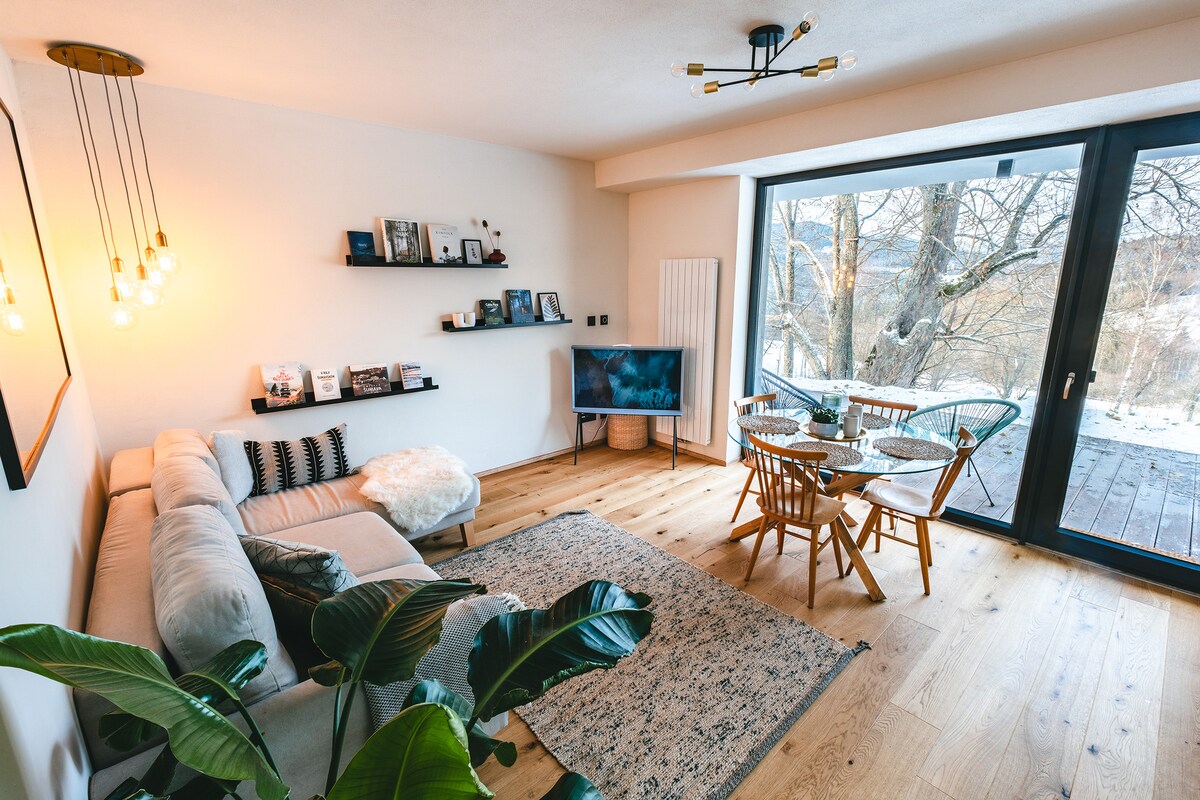 Apartemen kami Am Klopferbach I terletak di ujung jalan samping yang terletak di pedesaan. Apartemen dua kamar ini terletak di lantai dasar rumah kayu yang dibangun pada tahun 2020, terdiri dari pintu masuk, ruang tamu yang nyaman dan cerah, dapur kecil dengan fasilitas dasar, kamar mandi dan kamar tidur dengan lantai kayu dan teras hutan. Klopferbacherl mengalir di kaki properti dan taman ini menawarkan taman bermain anak - anak yang luas selain kolam renang pub.