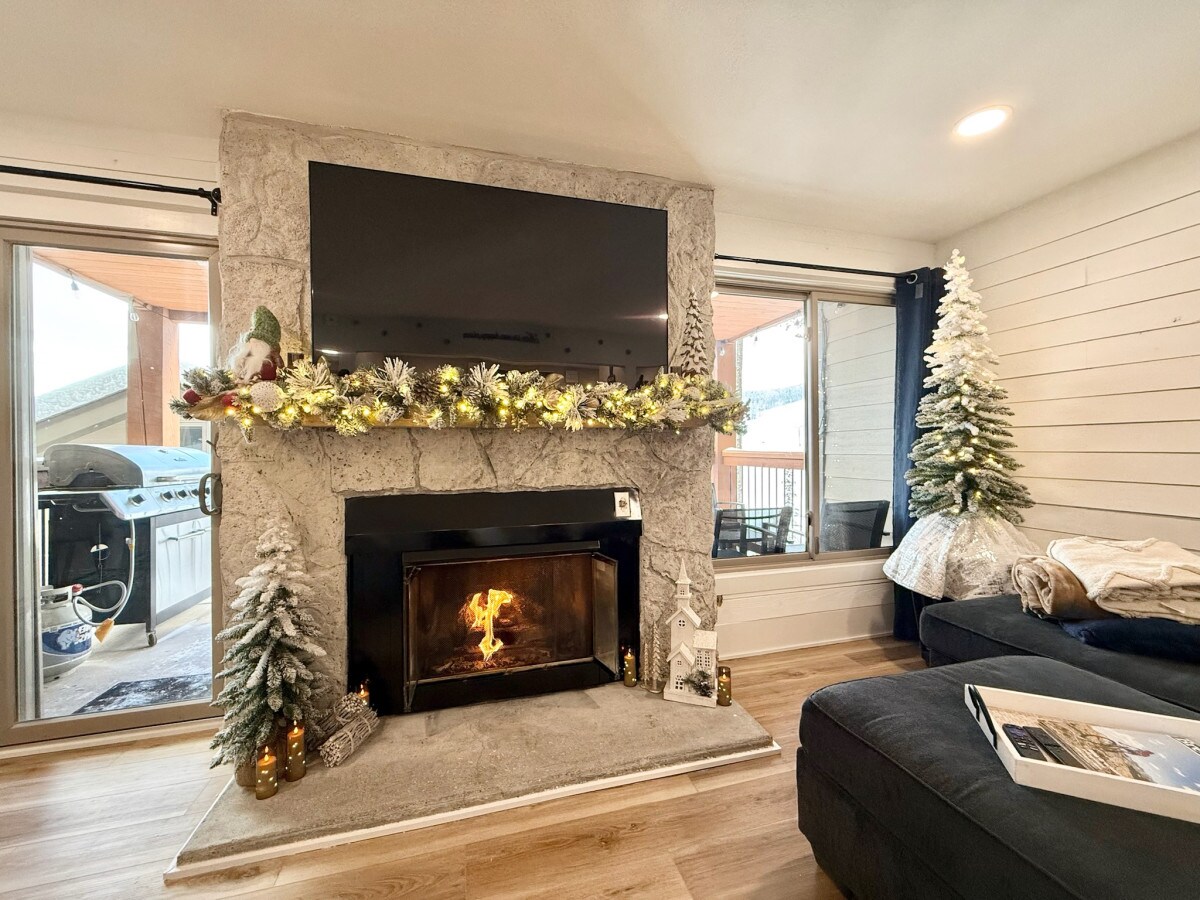 Lihatlah pegunungan dari balkon atau nyamankan diri di dekat perapian listrik! Beristirahatlah di gelembung bak mandi air panas komunitas atau bersantai di sauna setelah seharian berada di luar ruangan. Unit lantai atas yang luas dengan langit - langit kubah, kamar tidur King, dan sofa tarik di ruang tamu sangat cocok untuk hingga 4 tamu, dan ideal bagi mereka yang ingin menjelajahi area ski Peak 8, jalur pendakian/bersepeda, dan restoran/toko Jalan Utama. Liburan gunung yang sempurna menanti Anda.