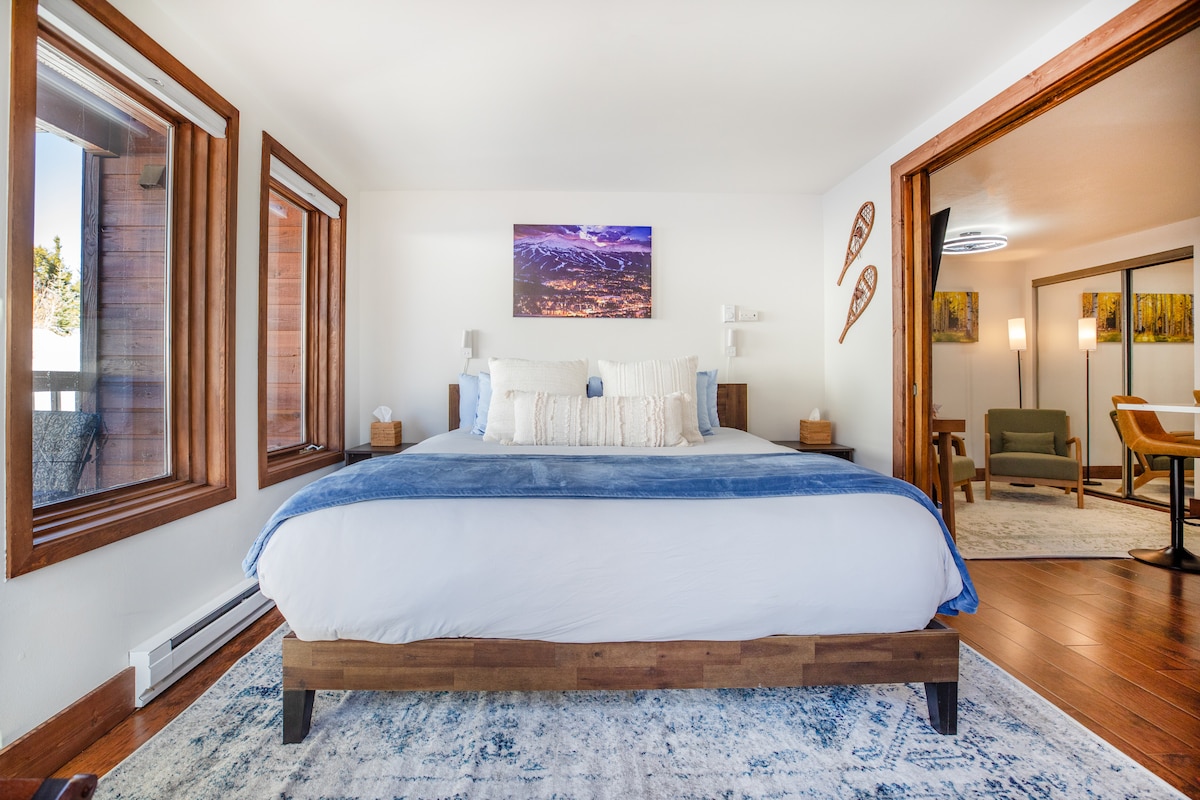►LOCATION: Peak 9 just 175 yds away. In the heart of downtown, Unravel Coffee and Cabin Juice are right across the street. 2 minute walk to Main St ►FAMILY FRIENDLY: Pack n play, baby bath, high chair, toy basket + more! ►EQUIPPED KITCHEN: Waffle maker, blender, coffee maker, pots, pans, toaster, mixer & more ►50" TV, G00gle Homes, Cable TV, Roku, bedside USB ports, keyless entry, Fast WiFi ►Mtn Views from balcony ►Fireplace, free wood often onsite ►Hot tub in resort ►FREE garage parking for one
