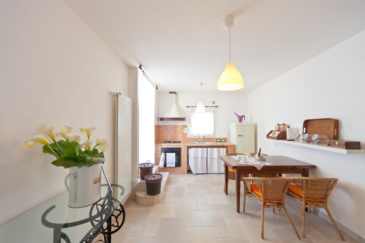 Nel cuore del centro, splendida abitazione indipendente tipica, luminosa e confortevole, con affascinanti volte a botte in tufo che creano un’atmosfera unica. Dispone di camera da letto accogliente, cucina attrezzata, bagno, due balconi e ampia terrazza ideale per rilassarsi. Dotata di Wi-Fi e aria condizionata. A 20 m da Piazza Aldo Moro, 50 m dal centro storico e a pochi passi da Lama Monachile. Posizione perfetta: centrale ma tranquilla, con privacy e comfort, ideale per coppie, vacanze relax