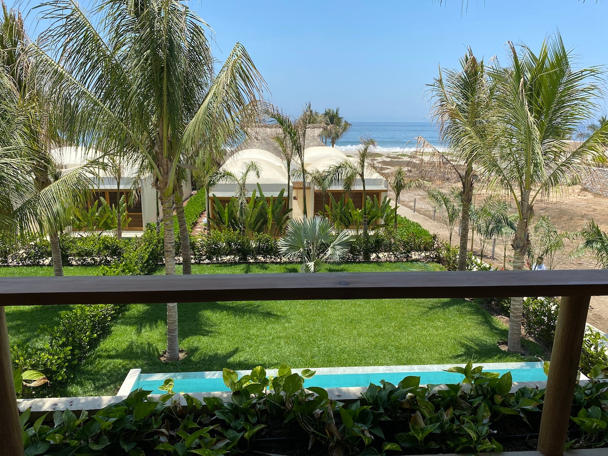 @casanayapuerto — where design meets the ocean. Your rate includes a full staff: daily breakfast, cleaners, and a dedicated house manager to ensure everything flows with ease Just a 7-minute walk to the beach and a quick 4-minute cab ride to La Punta . We offer the best of both worlds — tranquility and connection. Enjoy a private saltwater pool, bedroom A/C and ensuite bedrooms with breathtaking ocean views A place to unwind and feel inspired in the heart of Puerto Escondido