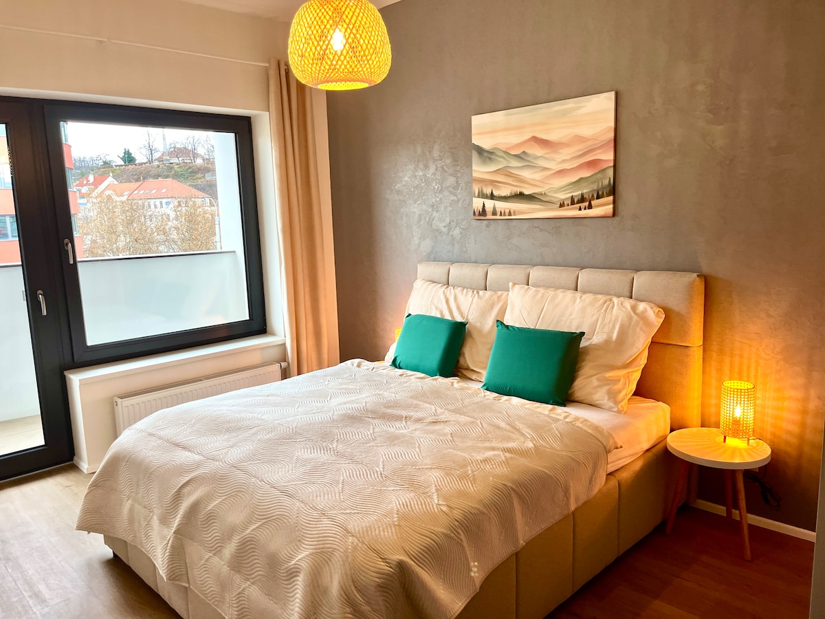 Riverside Apartment Brno (1 + dapur kecil, 37 m² + balkon 5 m²) menawarkan akomodasi modern dan tenang di pusat dekat tanggul Brno. Apartemen ber-AC dengan lift, internet cepat, dan tempat tidur nyaman untuk hingga 4 orang dan bayi sangat ideal untuk keluarga dan pasangan. Tamu akan menikmati pemandangan Brno, Petrov dan Špilberk, kedekatan lokasi pameran, pusat VIDA, stadion hoki dan jalur sepeda. Lokasi yang bagus menggabungkan ketenangan, kenyamanan, dan akses mudah ke tempat wisata dan transportasi.