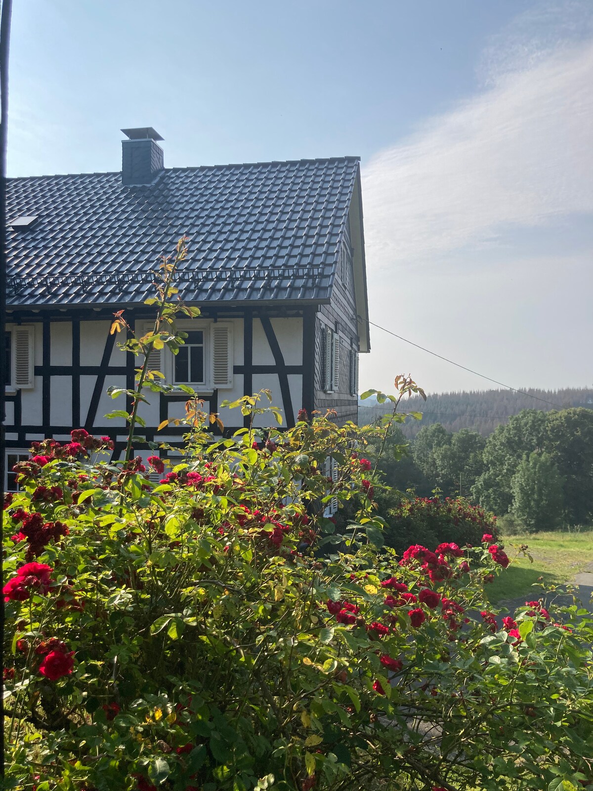 Die Ferienwohnung (ca. 42 qm) verfügt über einen Balkon, der eine herrliche Aussicht über die Berge bietet. Sie liegt ruhig im Höhendorf Schanze (720 m NN) am Rothaarsteig mitten in einem waldreichen Wandergebiet. Die Lage ist ideal für Ruhesuchende, die in herrlicher Natur entspannen wollen, sowie für Wanderer und Mountainbikefahrer. Im Winter ist Skifahren (Lifte in Schmallenberg und Winterberg), Langlaufen und Rodeln möglich.