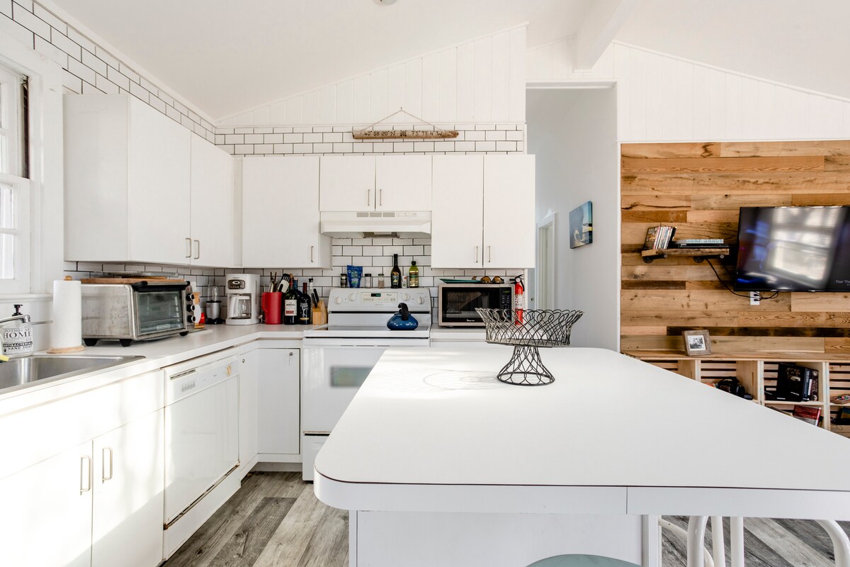 Bungalo Cerah & Nyaman di Eastend of Long Beach. Rumah ini memiliki konsep terbuka dengan dapur besar yang mengarah ke halaman belakang beraspal, BBQ, dan perapian. Oh - dan tidak perlu khawatir tentang parkir - kami punya jalan masuk!