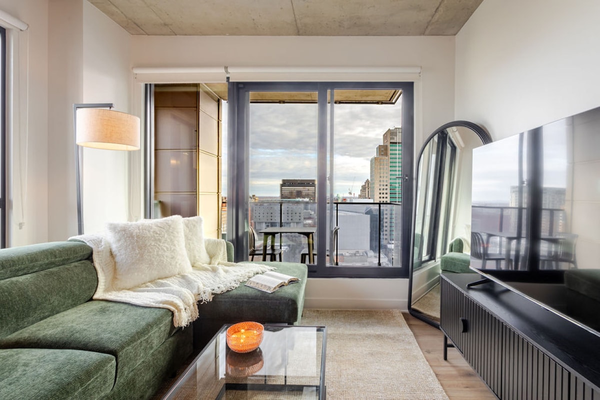 Kondominium berada di pusat kota dengan akses langsung ke Bell Center! Nikmati masa inap Anda dengan kemewahan dan kenyamanan dengan kondominium satu kamar tidur berperabot lengkap yang mencakup kopi gratis, pemanggang roti, ketel, dan semua peralatan dapur. Sauna, kolam renang, gym dengan banyak beban dan mesin, skylounge, ruang permainan, lounge dan teras dengan beberapa barbekyu yang Anda inginkan! Nikmati parkir bawah tanah gratis dan akses 1 menit ke sistem Subway tanpa harus berjalan kaki di luar! Termasuk Netflix
