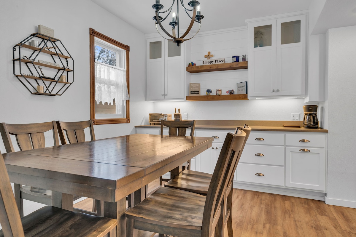 - Ramah keluarga, tempat peristirahatan yang berlokasi di pusat distrik kota -10 menit berjalan kaki dari Lapangan Lambeau dan Pusat Resch - Akses ke seluruh properti dan kami menyediakan banyak perlengkapan mandi untuk membuat perjalanan lebih lancar - Banyak permainan papan/kartu dan mainan untuk anak-anak, dan mesin popcorn. Dekat dengan banyak aktivitas keluarga - Semua tempat tidur memiliki kasur busa memori baru, dan dapur memiliki peralatan memasak stainless baru - Bersantai di luar di kursi Adirondack baru di dekat lubang api