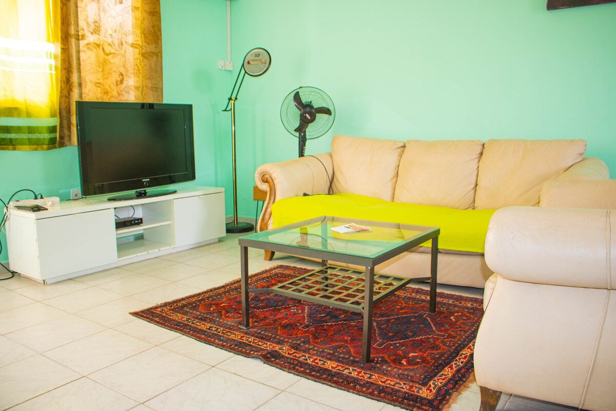 Akomodasi sederhana dan nyaman untuk seluruh keluarga dan bahkan untuk individu. Bungalow ini baru bult dan segar dengan perabotan modern dan nyaman. Wi - fi gratis (24 jam) kecepatan yang sangat bagus, cocok untuk orang - orang yang bekerja dari rumah. Seluruh kamar memiliki AC dan kipas angin termasuk ruang tamu. Properti ini berlokasi di jalan pesisir tengah di Jabang/Sukuta. Tempat ini dekat dengan sebagian besar titik utama seperti Senegambia, Serekunda, Brikama, Bandara, dan banyak supermarket.