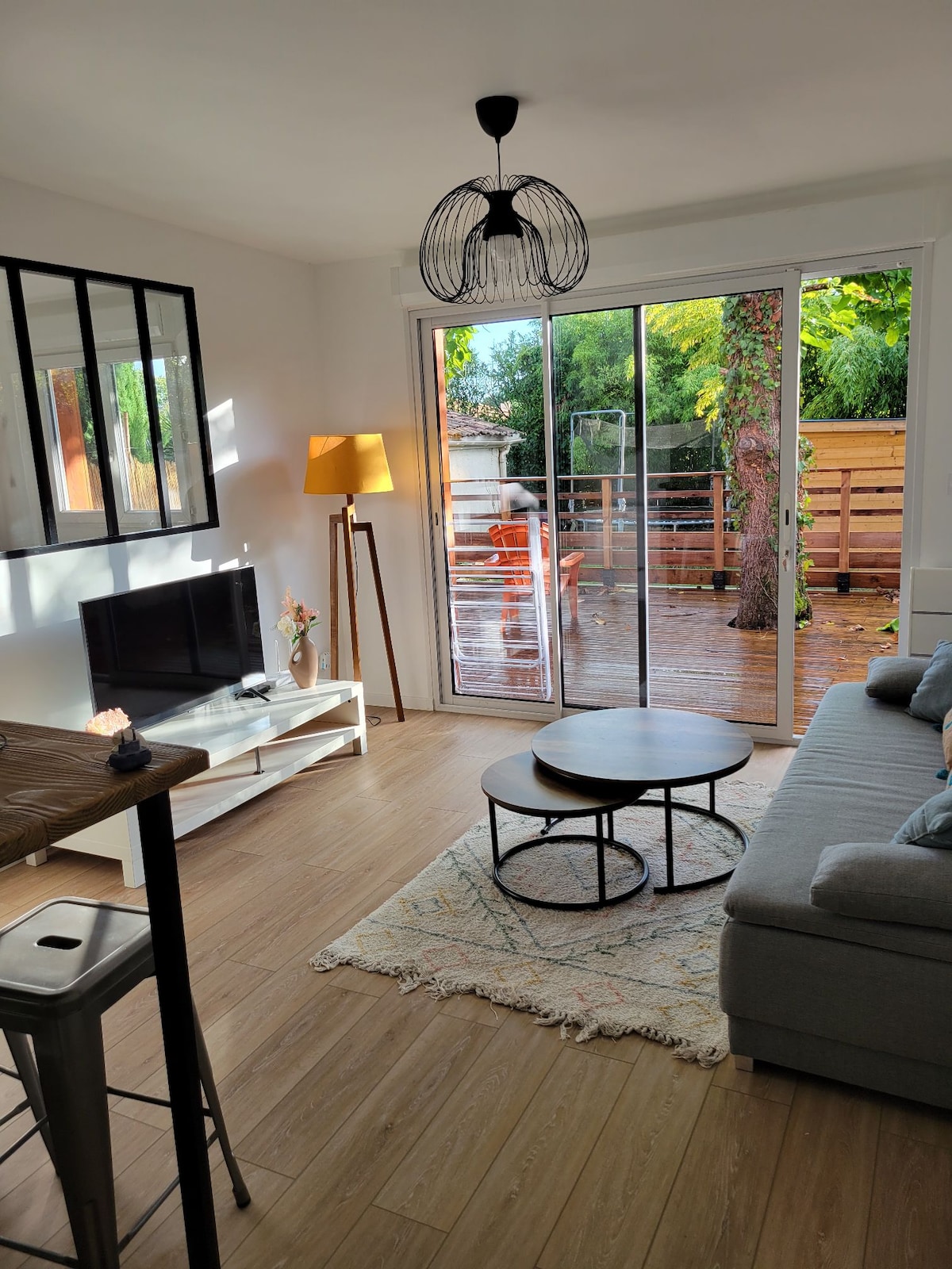 Profitez de bordeaux et de ses alentours (Sites culturels, Vignobles, Plages …) et venez vous reposer dans notre confortable T1 bis / T2 spécialement pensé pour accueillir des voyageurs à la recherche de confort et de convivialité. Lit en 160 Nous saurons vous orienter durant votre séjour (lieux à visiter, restaurant, bar …). La maison est à 100 mètre des tennis, piste d’athlé, Parc et Commerces. Un salon de jardin est à votre disposition pour profiter d un café ou d un petit repas en extérieur.