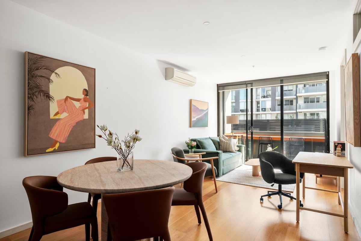 Apartemen 1 tempat tidur 1 kamar mandi yang semarak dengan balkon dan pemandangan indah di kota, terutama pemandangan malam yang cemerlang karena berada di lantai tinggi. Hidup seperti warga lokal di apartemen canggih di Melbourne CBD. Halte trem berada tepat di depan pintu, supermarket, pasar Victoria, pusat kota Melbourne, tempat wisata berperingkat tinggi dalam jarak berjalan kaki. Ada berbagai restoran dan hotel kelas atas. Sarapan siang dan hiburan belanja disediakan untuk semua. Wi - Fi berkecepatan tinggi gratis