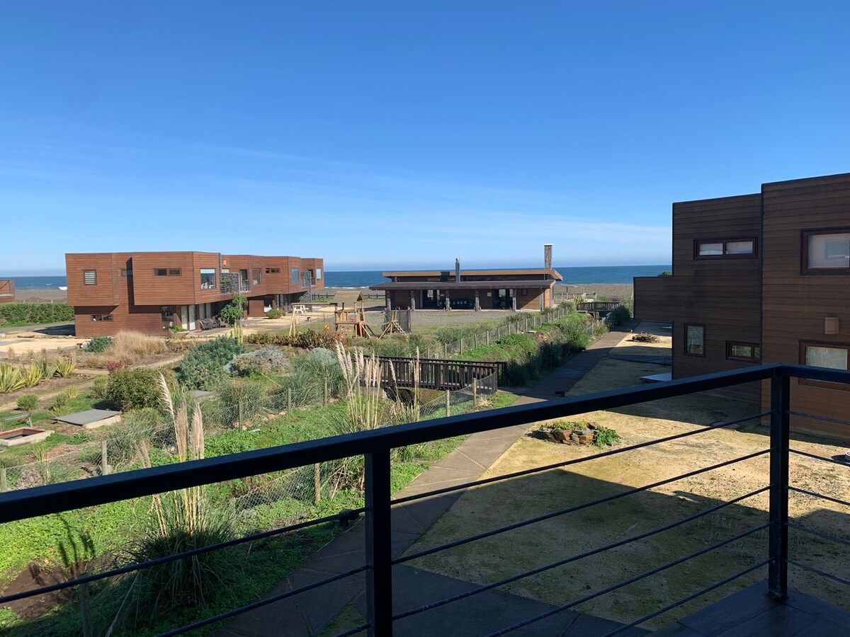 Nikmati garis pantai Maule yang belum pernah ada sebelumnya. Pemandangan tepi laut dengan fasad berlapis kaca sepanjang 14 meter dengan jendela dari lantai hingga langit - langit yang membuat pemandangan menjadi pertunjukan 24 jam. Kalau - kalau Anda perlu tidur lebih lama, cukup turunkan tirai hitam dan Anda baik - baik saja. Loteng ini memiliki 1 tempat tidur double, tempat tidur sofa, teras yang dilindungi angin selatan, internet Starlink, dapur lengkap dan kamar mandi batu dan kayu yang bergaya. 10 km ke selatan Curanipe, 300 meter dari jalan utama dan beberapa langkah dari pantai.