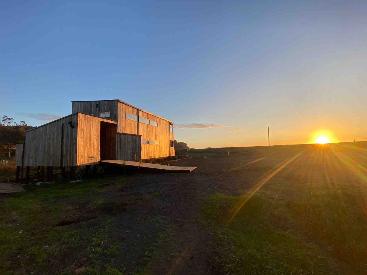 Experience the Maule coastline like never before. Oceanfront view with a 14 meter-long fully glazed facade with floor-to-ceiling windows that make the view a 24-hour show. In case you need some more sleep just roll down the black-out curtains and you’re good. The loft features 1 double bed, sofa bed, south-wind protected terrace, Starlink internet, fully equipped kitchen and a stylish stone and wood bathroom. 10 km south of Curanipe, 300 meters from the main road and steps from the beach.