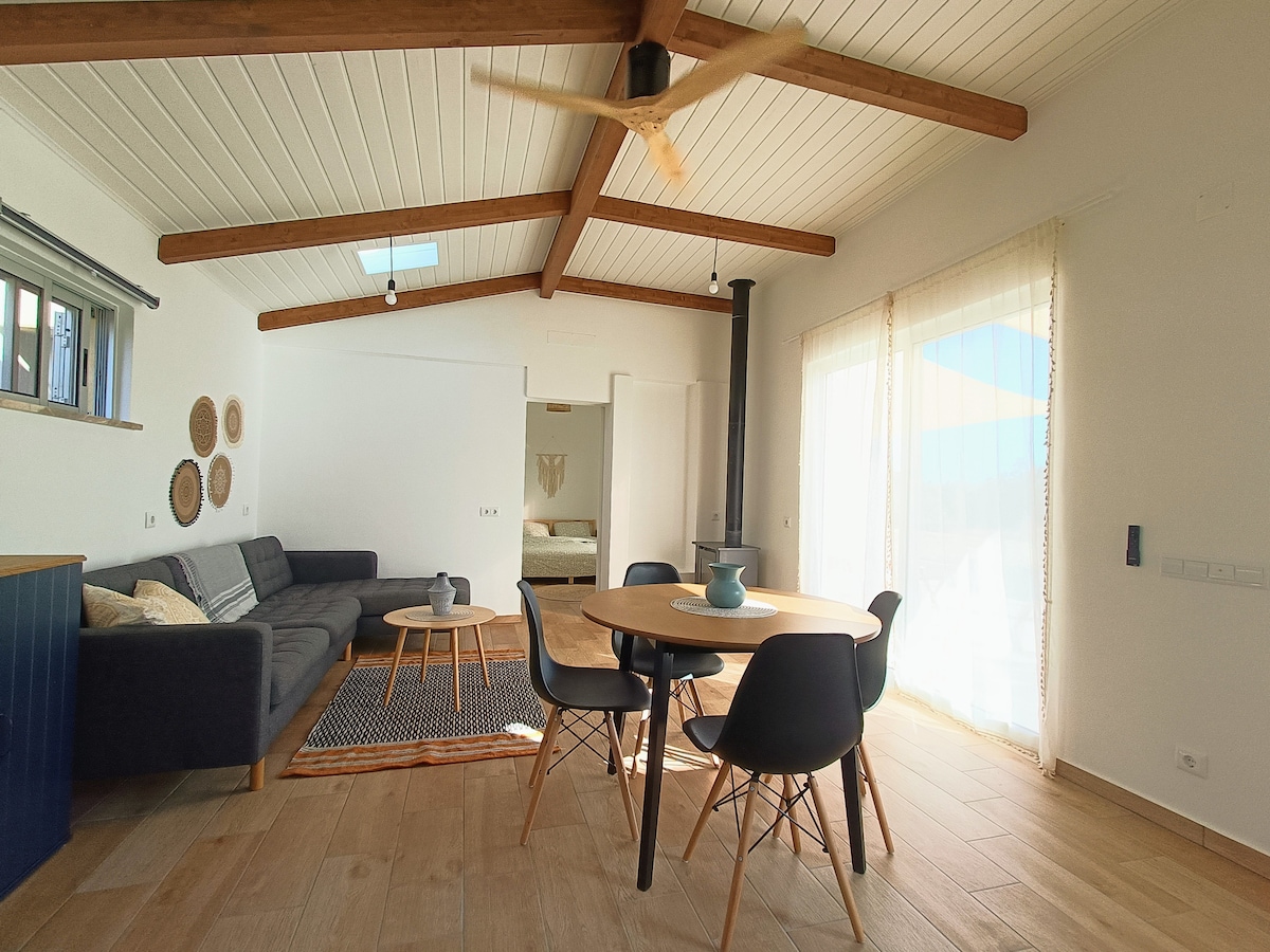 Nikmati berselancar/yoga/hiking/mengamati burung/kehidupan pantai dengan standar modern, dikelilingi oleh alam yang indah dari "taman nasional Costa Vicentina" dan dengan pemandangan indah di Pantai Ingrina (dalam jarak sekitar 1 km) Villa ini telah direnovasi sepenuhnya dan menyediakan standar tinggi dengan dapur modern, ruang tamu bergaya Skandinavia dan dua kamar tidur besar (tempat tidur double/ 2 x single bed) dengan luas sekitar 90 meter persegi. Wi - Fi yang bagus termasuk. Kamar tidur tambahan di lantai atas (langit - langit rendah) tersedia sesuai permintaan, hubungi kami!