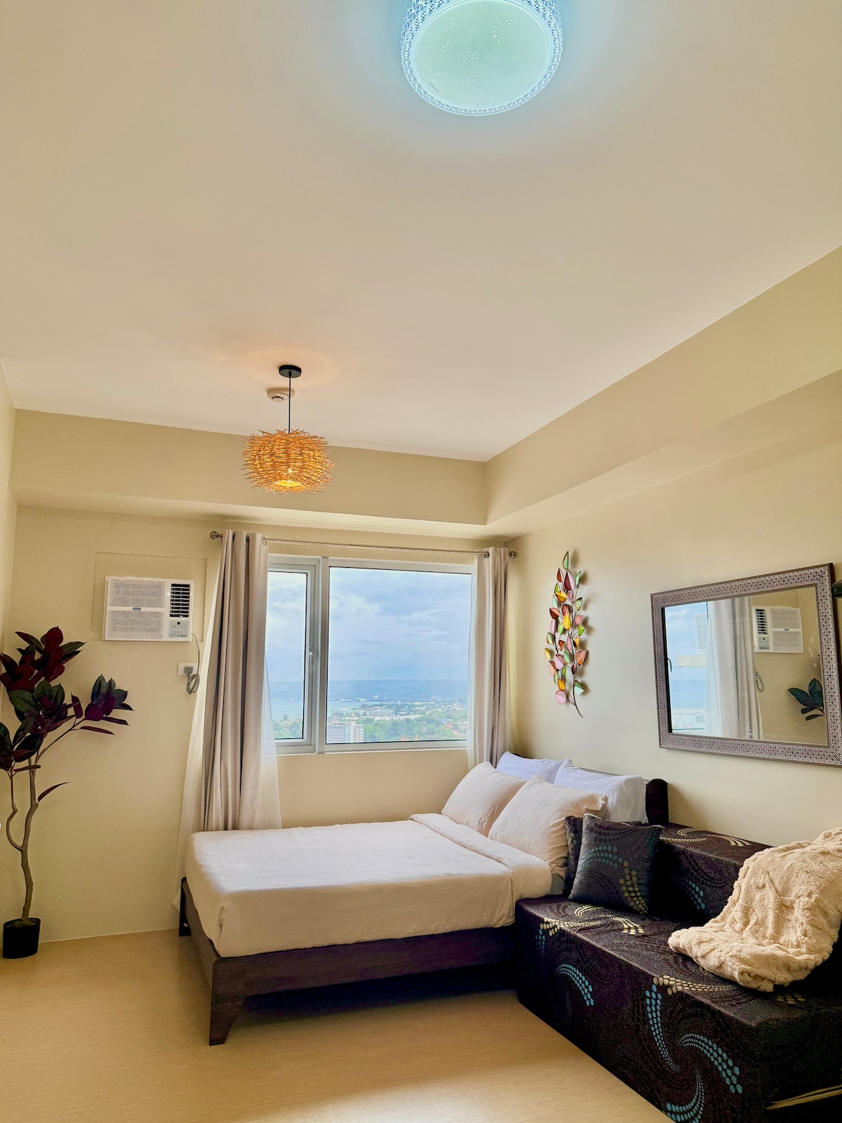 Unit kondominium ini berjarak berjalan kaki ke restoran, toko, rumah sakit, dan Ayala Mall. Sekitarnya aman. Ada petugas keamanan 24 jam dan staf yang ditugaskan di lobi. Terdapat lift di gedung ini. Interior unit studio hangat dan nyaman. Tempat ini dilengkapi dengan 2 tempat tidur double. Tempat ini bisa menerima hingga 3 tamu. WIFI internet disediakan - ideal untuk panggilan internet dan berselancar web.