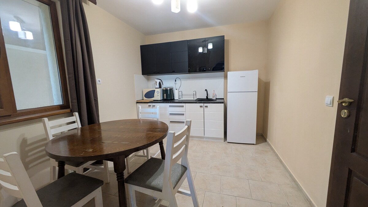 Studio ini memiliki tempat tidur double (kamar tidur 1,60 x 2,00 m), sofa bed (dapat diperpanjang - 1,40 x 1,90 m), dapur kecil, kamar mandi, teras yang menghadap hutan pinus dan pegunungan. Dapurnya memiliki semua peralatan masak dan peralatan makan yang diperlukan. Komplek ini memiliki tempat parkir gratis sendiri. Karena tidak ada tempat parkir di sekitarnya, ada tempat parkir berbayar. Lift, lereng, tempat acara, dan restoran bisa ditempuh dengan berjalan kaki.