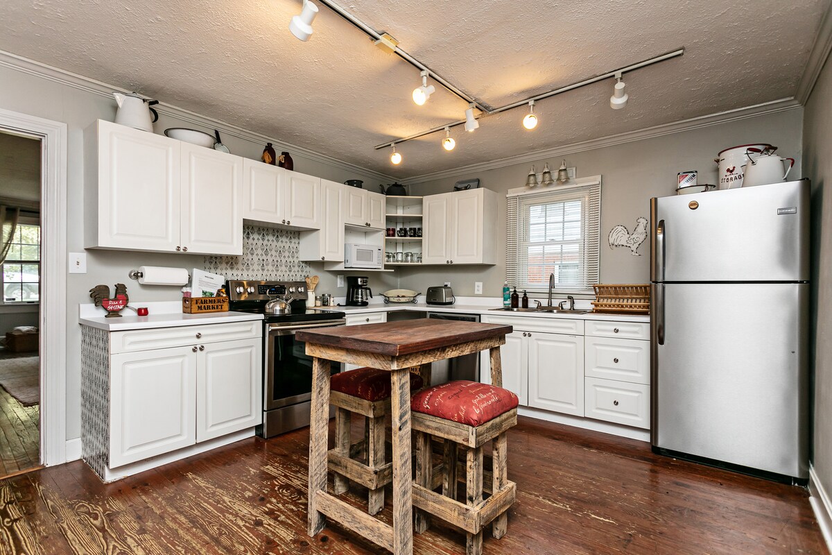 "Cottage in the Rye" kami adalah rumah Anda saat Anda menjelajahi jalur Bourbon. Tetapi jangan biarkan kata "cottage" menipu Anda! Dengan kamar tidur 6+ tamu, 2 1/2 kamar mandi, LR besar, dapur, DR dan ruang bawah tanah yang telah selesai sebagian, ada banyak ruang untuk bersantai dengan nyaman. Penat berkendara dari perjalanan Anda? Pondok ini berjarak lima menit berjalan kaki ke Court Square, di mana Anda bisa menemukan makanan panas, bourbon di bebatuan di lingkungan setempat berbicara dengan mudah atau soda pop di toko obat lokal.