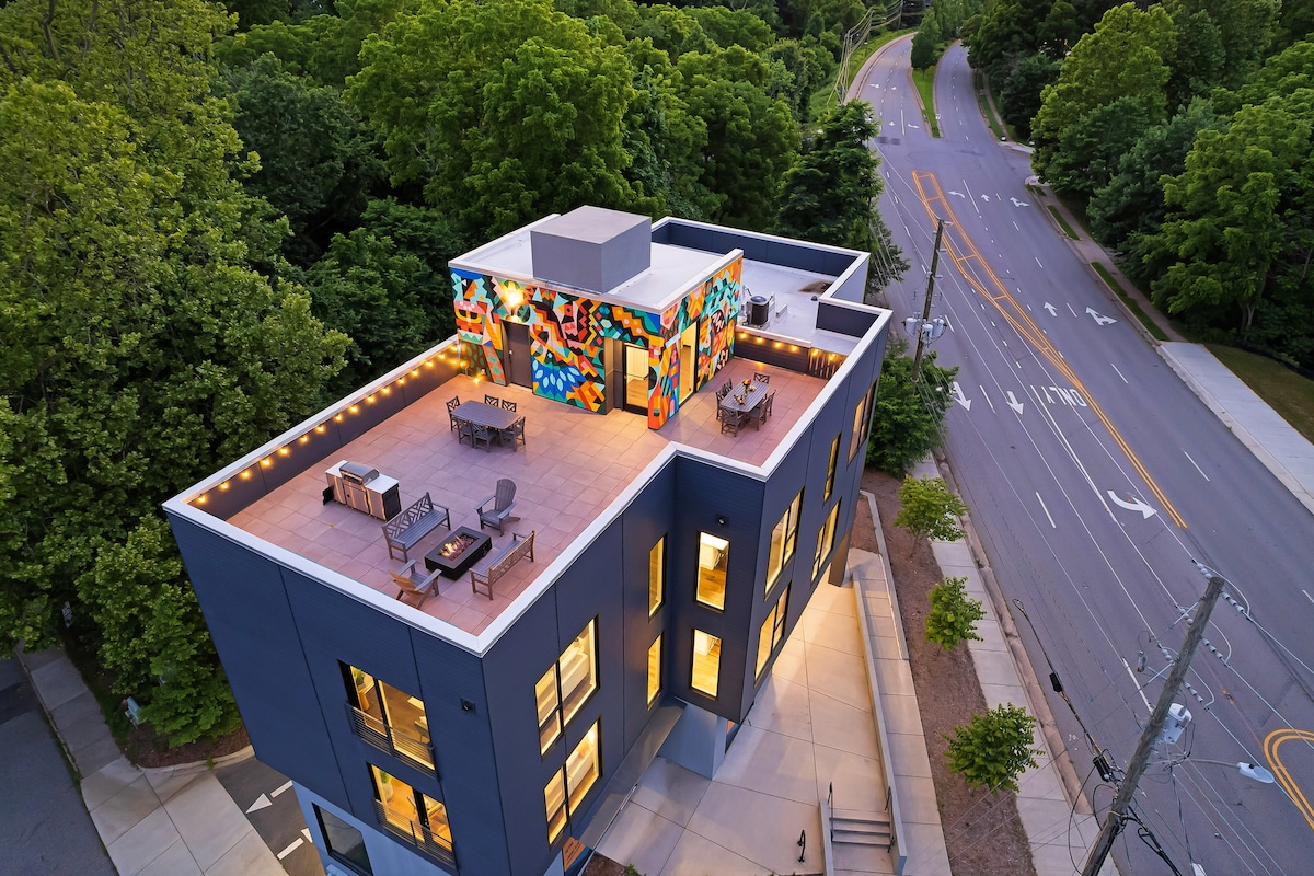 Selamat datang di Heron Suite di @PerchAVL! Ideal untuk keluarga dan teman; kenyamanan dan kesenian bertabrakan di loteng yang baru dibangun ini dalam jarak berjalan kaki dari pusat kota Asheville, NC. Di The Perch, mural terkenal Asheville tidak berhenti di jalan - suite Anda penuh dengan warna - warni dan di sekitar properti Anda akan melihat mural dan lukisan yang dilukis dengan tangan dari Wyatt Grant. Malam Hangat bisa dihabiskan di dek atap yang menawarkan pemandangan kota, perapian, pemanggang gas, dan tempat duduk yang cukup untuk memasak.