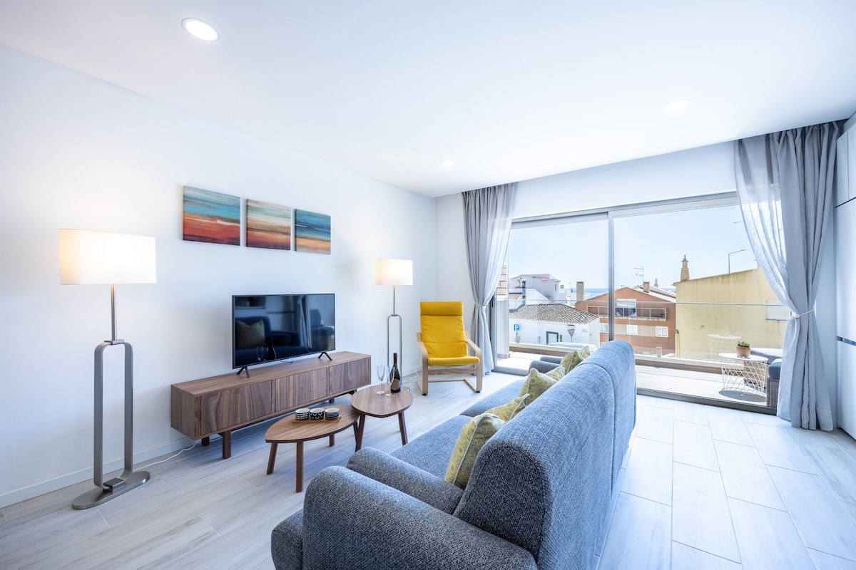 Apartemen Pantai 2 di Burgau dengan pemandangan pantai dan AC