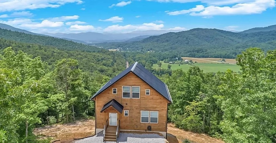 Kabin pegunungan dengan pemandangan jarak jauh yang indah
