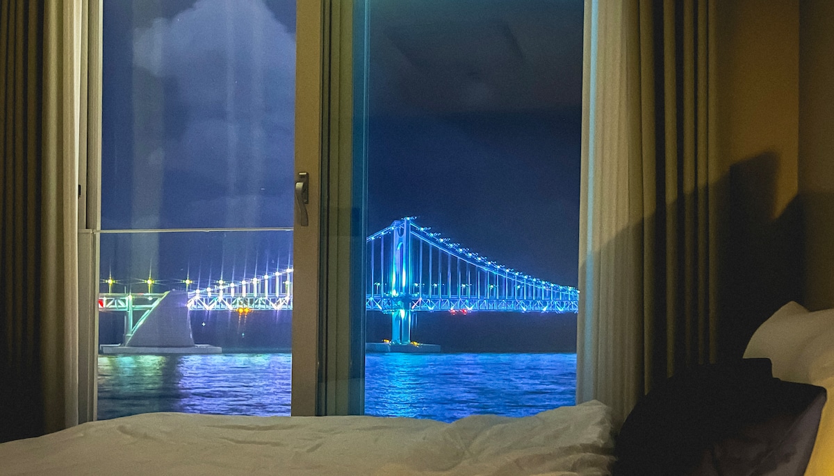 *14#Pemandangan Jembatan Gwangan#Akomodasi Resmi#Parkir Gratis#Milak The Market#Foto Seumur Hidup#2 Tempat Tidur