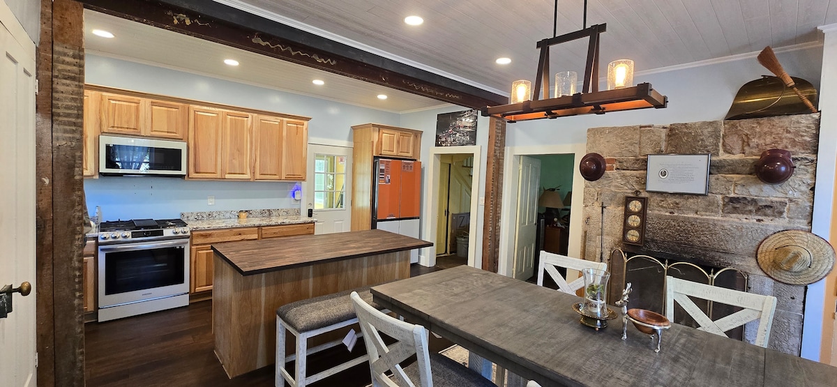 Berliburlah ke rumah pedesaan kami yang menawan, tempat ketenangan pedesaan berpadu dengan kenyamanan modern. Nikmati ruang yang baru direnovasi dengan tiga kamar tidur, satu kamar mandi, dan pemandangan indah hutan dan lahan pertanian. Jelajahi keindahan negara ini atau bersantai di dek belakang atau perapian. Di dalam, ruang tamu terbuka dan dapur berfasilitas lengkap menanti. Baik itu tempat peristirahatan yang damai atau petualangan keluarga, nikmati keajaiban pedesaan dengan segala kenyamanan rumah. Pesan sekarang untuk kenangan pedesaan yang tak terlupakan.