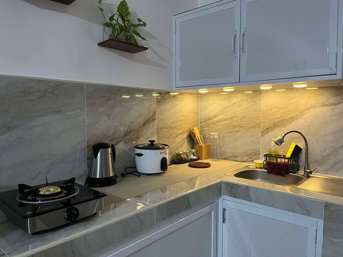 Amenities: -Outdoor CCTV -Key- secured gate -Smart lock door access -Terrace / coffee area -Comfortable living area -Fully equipped kitchen -Dining area -Snack/wine bar area -Air-conditioned bedroom (Queen size bed) 📚 Study den 🛀🚿Bathroom with bathtub and shower 🚽 Separate restroom 📺 55” Smart TV 🛜 FREE WIFI 🍿NETFLIX 🎲♟️board games 🎤 Bluetooth Party Karaoke ⏲️ microwave oven 🍃🧖♀️Guest essentials: 🧂FREE condiments ☕️FREE coffee 💧FREE drinking water 🧴FREE toiletries