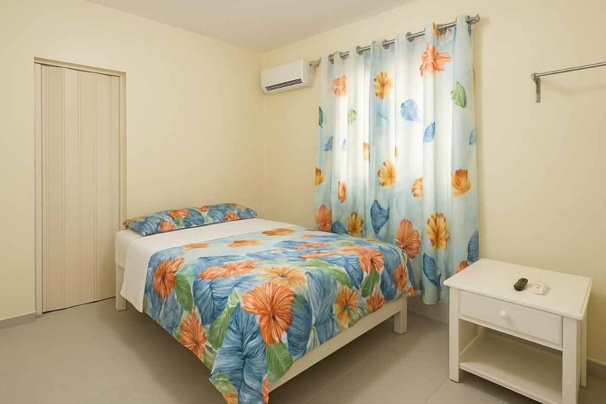 Apartemen nyaman, di lantai dasar. Tempat ini memiliki 2 kamar tidur dengan AC dan kipas angin langit-langit, 1 kamar mandi, air panas (kamar mandi) patio dengan area sosial; jacuzzi pribadi dengan (air suhu kamar), barbekyu, 1 kamar mandi, tempat parkir pribadi dengan gerbang listrik. Lokasi bagus, di salah satu jalan utama kota. Beberapa menit dari minimarket, ATM, dan restoran makanan.