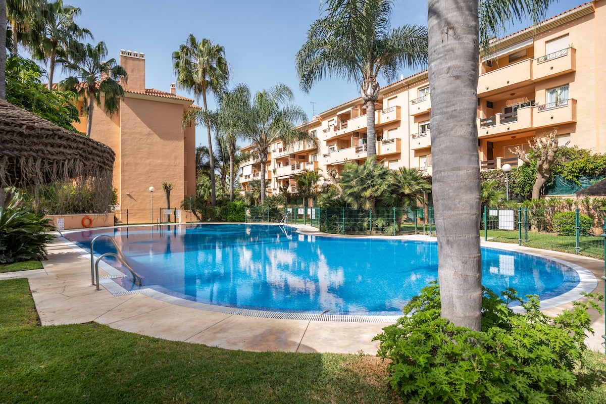 Apartemen nyaman DEPAN SAMUDRA tepat di tengah-tengah Puerto Cabopino, Marbella. Pantai, Bar, dan Restoran hanya berjarak 30 m! Teras yang indah dengan pemandangan taman. ✓Pantai dan Bar @ HANYA 30 m ✓Tempat Parkir dalam ruangan pribadi @ Puerto Cabopino ! Kolam renang ditutup untuk musim dingin karena rencana penghematan air di Costa del Sol ✓2 TEMPAT TIDUR QUEEN SIZE Koneksi Internet WiFi OPTIK Kecepatan✓ Tinggi ✓Baru direnovasi TV layar✓ datar. ✓Dekat dengan Bandara Malaga (30 menit dengan mobil) Apartemen ✓berfasilitas lengkap ✓Banyak ruang penyimpanan