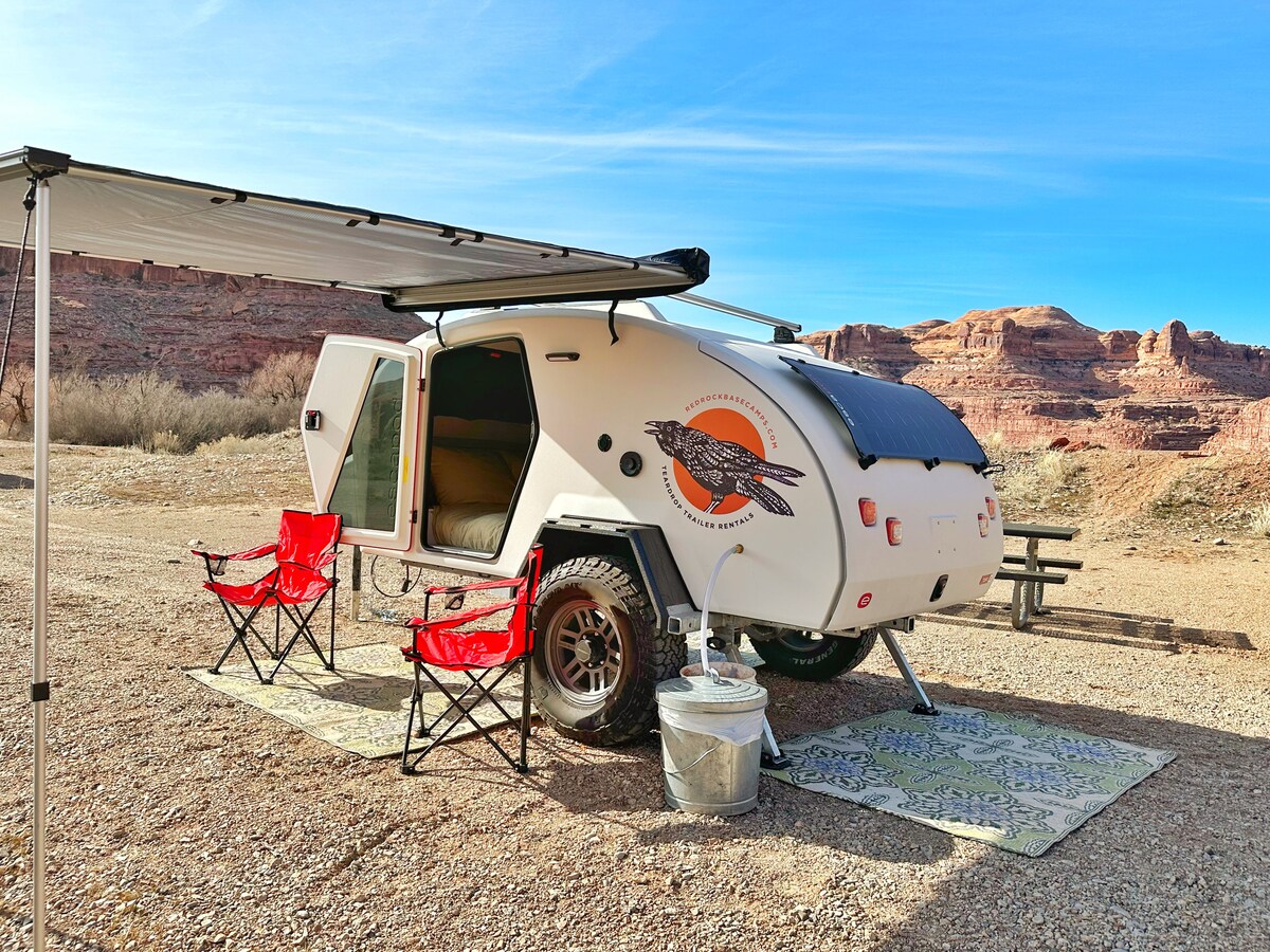 Tidak ada yang mengalahkan perasaan menghabiskan malam di luar ruangan yang luar biasa dan tidak ada cara yang lebih baik untuk merasakan gurun batu merah Moab yang menakjubkan. Trailer papan atas ini akan membuat pengalaman berkemah Anda menjadi pengalaman glamping! Sambut keindahan gurun sambil memasak sarapan di dapur luar ruangan kami yang lengkap. Kami mengantarkan ke perkemahan Anda. Tidak perlu menderek! Anda mengamankan perkemahan Anda dan kami akan mengurus sisanya.