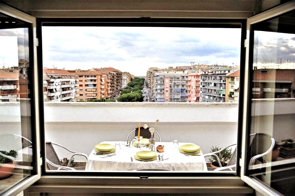 Loteng kecil yang terawat di gedung yang hidup di Testaccio