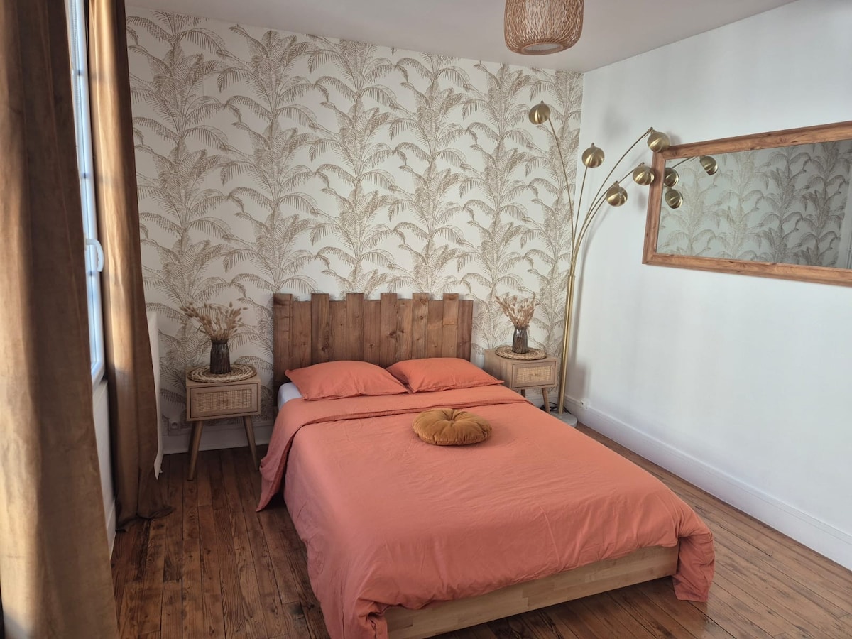 Apartemen yang menyenangkan ini telah direnovasi sepenuhnya dan didekorasi dengan cermat. Lokasinya berada di jantung Caen, dan memiliki pemandangan Kastel. Sorotan: - Lokasi yang ideal - Dekorasi yang rapi - Dekat dengan toko, transportasi, dan monumen Caen - Penyediaan semua seprai (seprai, handuk, handuk, dll.) - Dua kamar tidur yang luas dan sopir pendorong untuk satu orang. Anda akan menikmati masa inap yang menyenangkan bersama kami!
