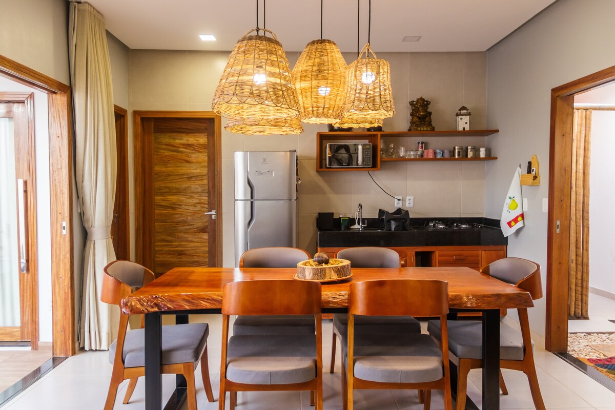 Casa terletak di Barra Grande, tipe studio baru yang menawan, hanya 5 menit berjalan kaki ke pantai dan bar dan restoran terbaik! Sangat cocok untuk 3 orang (4 orang dengan gaya). AC, TV 32”dengan Netflix, Wi - Fi, dan dapur lengkap (minibar, microwave, pembuat kopi, dan banyak lagi). Dua tempat tidur single yang melihat pasangan dan bicama yang berubah menjadi sofa. Area luar ruang dengan tempat tidur gantung, pancuran, ayunan, jungkat - jungkit, dan area barbekyu di bawah asam. Pesan sekarang dan nikmati Barra Grande sebagai warga lokal!
