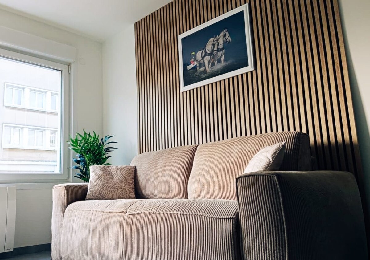 Apartemen bagus di lantai 1. Terletak di Calais Utara, hanya beberapa menit berjalan kaki ke pantai Calais dan dekat dengan pertokoan dan hiburan musim panas. Dilengkapi dengan ruang tamu (tv & wifi), dapur lengkap dan dilengkapi ( ketel dan senseo) kamar mandi (dengan mesin cuci), toilet terpisah dan kamar tidur yang indah. Sarapan Gratis 😋 Check - in mandiri, namun kami dengan senang hati akan memberi tahu Anda tentang masa inap Calaisian yang sukses 😃 Atas permintaan: tempat tidur bayi...