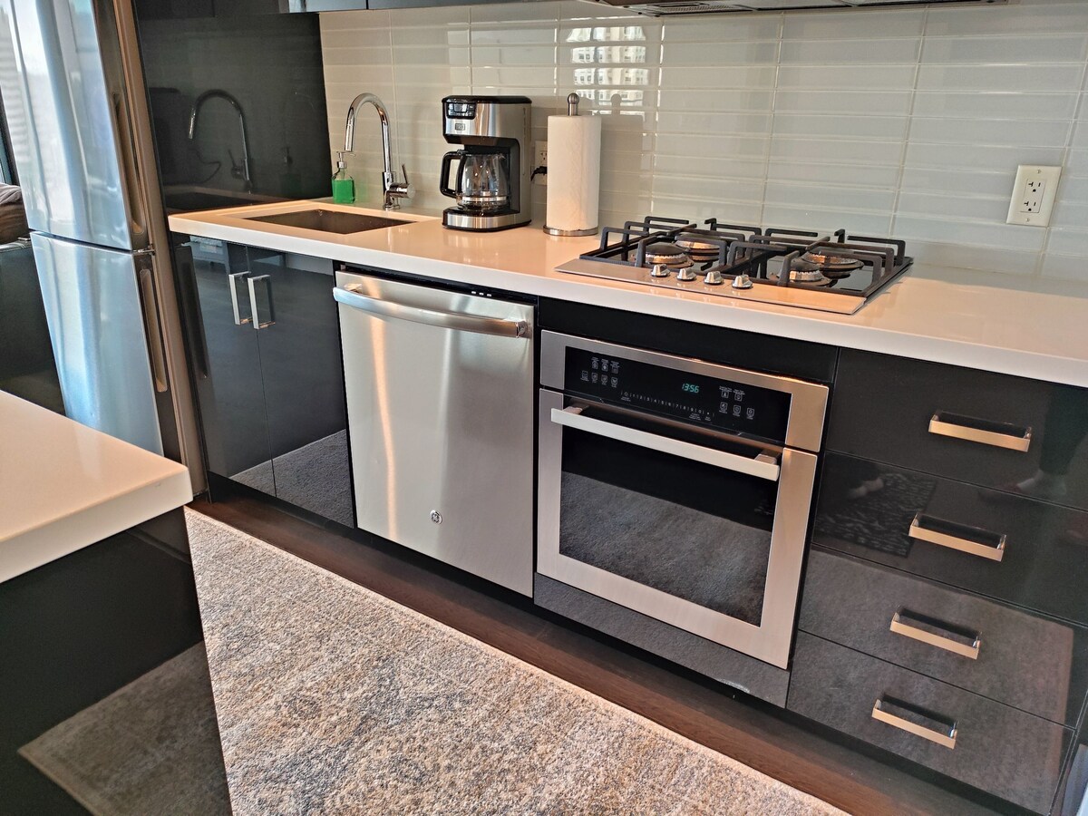Kondominium 2 Kamar Tidur, 2 Kamar Tidur, 2 Kamar Mandi yang modern ini berada di pusat kota Calgary dan memiliki peringkat skor berjalan kaki 96! Kondominium ini berdekatan dengan 17th Ave, Stephen Ave, Core Shopping Centre, Calgary Tower, Stampede Grounds, angkutan umum, dan banyak lagi! Ruang ini mencakup Balkon Pribadi, Parkir Bawah Tanah Gratis, Pemandangan Panorama Calgary Tower &Mountains, Wifi, TV 50in dengan Kabel dan Netflix, langit - langit 10 kaki, Furnitur dan AC Baru.