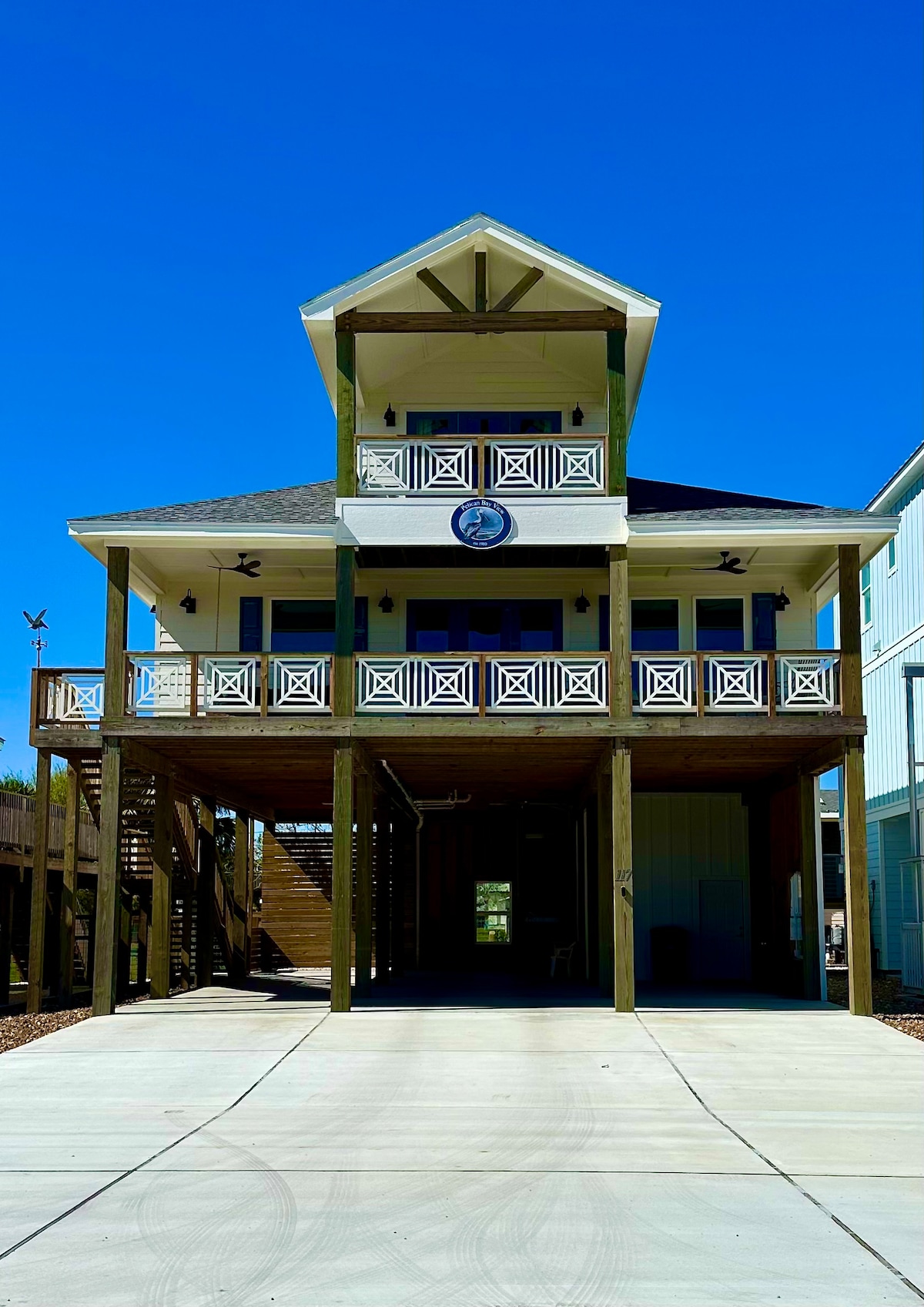 Pelican Bay View is a newly built 1900 sq ft beach house completed in 2025, designed for relaxing coastal stays with incredible views. From the three decks you can watch the sunrise over the water, see the moonrise in the evening and end the day with beautiful sunsets. With water access less than 200 ft away and Kingfisher Beach just two blocks from the home, it's the perfect spot for kayaking, fishing, beach days and peaceful evenings by the coast. You will love it!!