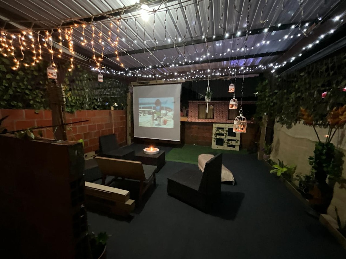 Refugio romántico, cine y fogata en jardín privado