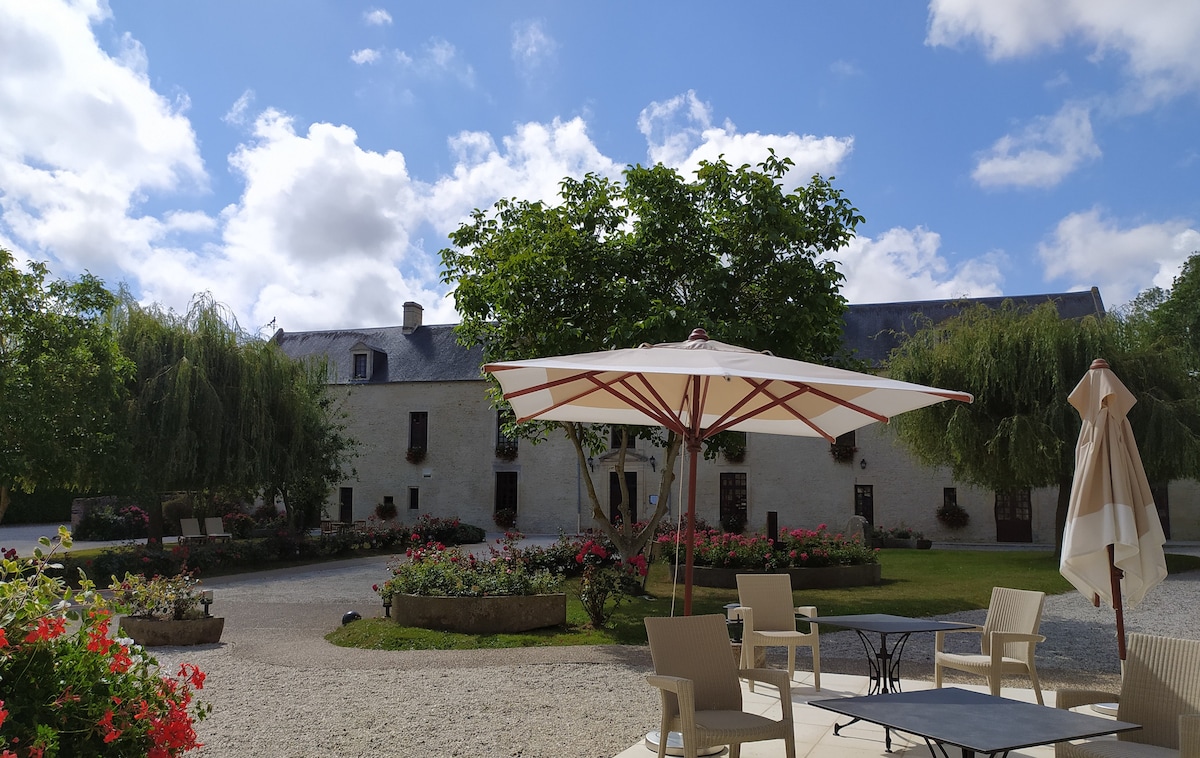 Kamar yang bagus di pusat kota Bessin di Normandy. Terletak di lantai pertama dan dapat diakses dengan tangga, kamar tidur memiliki tempat tidur queen-size yang nyaman (160x200 cm), area meja, TV, ketel, pemanas listrik, dan kamar mandi dengan shower dan pengering rambut. Toilet terpisah. Di depan Overlord Museum (2 menit berjalan kaki), dekat dengan Omaha Beach dan American Cemetery (8 menit berjalan kaki). Lain - lain: - Seprai dan handuk disediakan - 1 tempat parkir