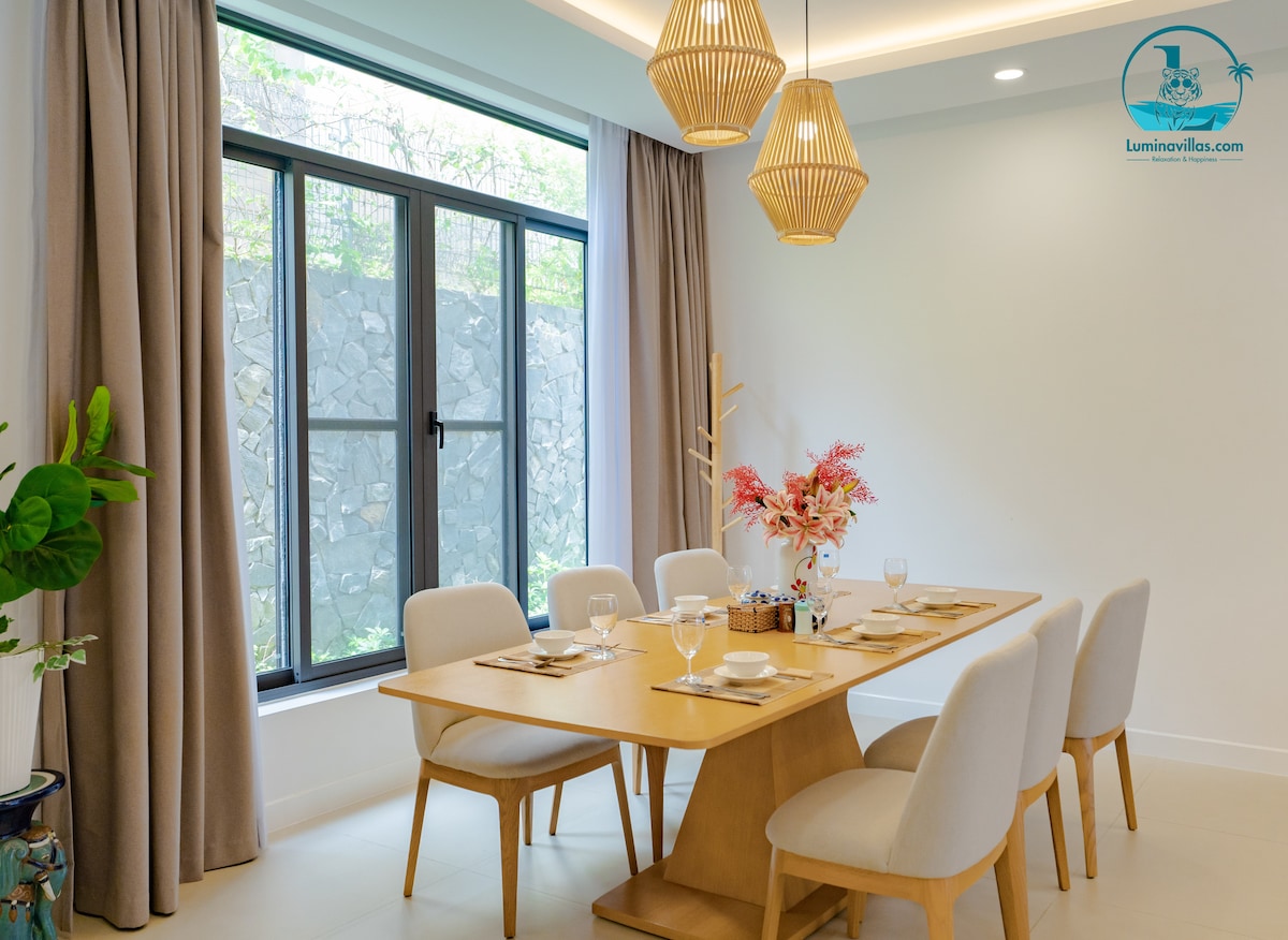 Di rantai villa resor yang terletak di kompleks Wyndham Garden di pantai Bai Dai, 5 menit berkendara dari bandara Cam Ranh. Dirancang dengan sangat mewah, dengan kolam renang pribadi di setiap vila, bersama dengan kolam renang besar, restoran, gym, spa... Dengan pantai yang indah, vila pemandangan laut dengan fasilitas lengkap, mewah, staf khusus; Lumina Villas Cam Ranh adalah rumah liburan ideal Anda.
