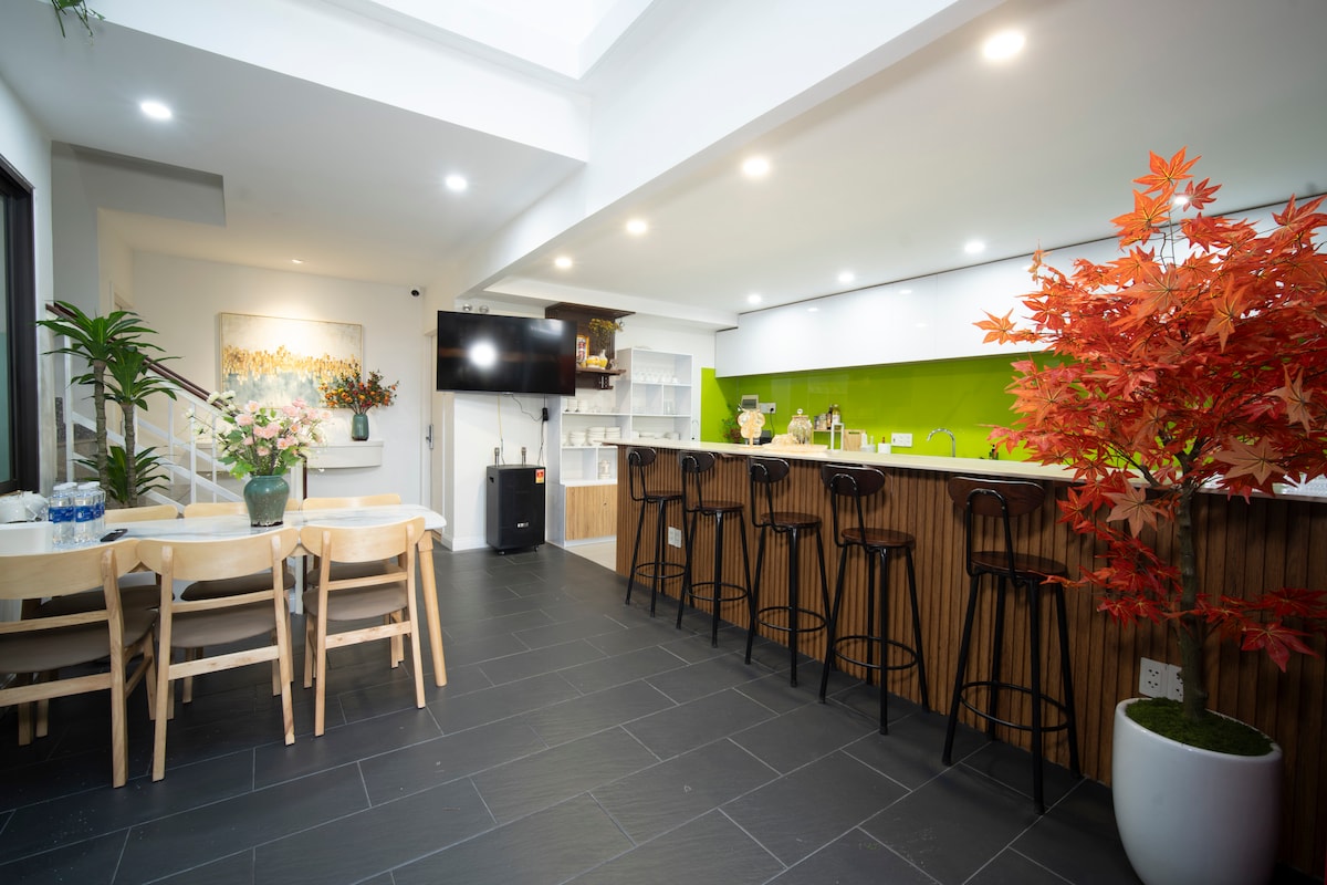 BAMÁ House dirancang dengan gaya wabi - sabi minimalis modern. Nama rumah BAMÁ berarti orang tua dalam bahasa Vietnam yang merupakan hadiah dari seorang anak yang dibangun kembali dari rumah kekanak - kanakan. Oleh karena itu, kehangatan dan keakraban adalah dua pengalaman nuansa umum selama Anda menginap. Rumah cantik ini didekorasi penuh dengan 2 tempat tidur king - side besar, ruang tamu yang santai terhubung dengan dapur hangat, atap yang luas untuk bbq dengan 3 kamar mandi mewah. Terletak tepat di pusat kota, 2 menit ke bandara, 3 menit ke sungai Han, 7 menit ke laut