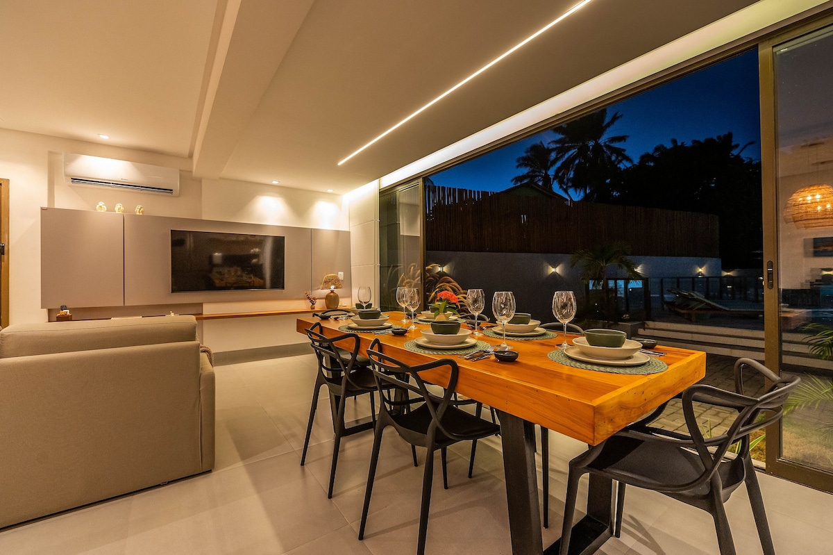 Desa mewah 3/4 terletak di Barra Grande Maraú - Bahia. Lokasi yang sangat baik, 3 menit berjalan kaki ke pusat desa. Disampaikan pada tanggal 22 November, dengan 10 tempat tidur (4 tempat tidur queen, 1 tempat tidur sofa) 2 kamar mandi (en - suite + sosial). Toilet. Dapur lengkap. Kamar tidur ber - AC dan ruang duduk. Suite dengan TV 32". Ruang dengan TV 50". Wifi. 1 garasi tempat parkir. Kondominium terbaik di Barra Grande, dengan kolam renang, area barbekyu, spa, pusat kebugaran, dan hari Senin pribadi.