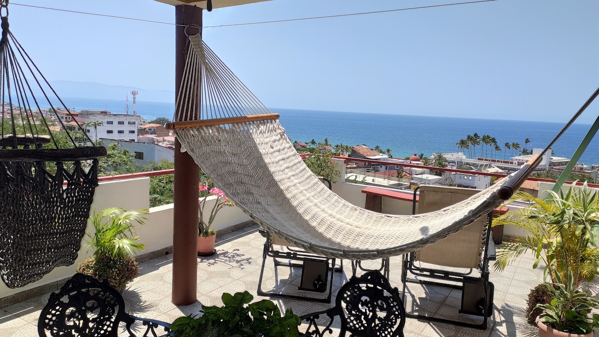 Dari kamar besar dan dek besar Anda bisa menikmati pemandangan pegunungan 360 derajat, Zona Romantica, dan Samudra Pasifik. Kami berada di sebelah rumah Elizabeth Taylors, namun langsung di Sungai Cuale. Lingkungan tenang. Hanya 4 menit berjalan kaki menyusuri taman sungai ke pantai, Malecon, dan toko - toko. Tidur di malam hari dengan semua pintu terbuka dan nikmati suara sungai dan angin turun ke lembah. Buat makan malam di dapur luar ruangan dan saksikan matahari terbenam di atas Kepulauan Marieta.