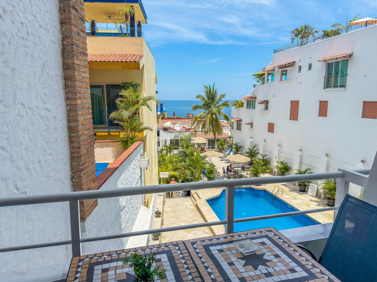 A Guest Favorite consistently ranked among the top-rated stays worldwide, Miguel's Mirador is Villa Amistad's crown jewel — a premium top-floor studio with stunning views of Banderas Bay and the Pacific horizon. Your private terrace with hammock, lounge seating, and unforgettable sunsets is waiting.