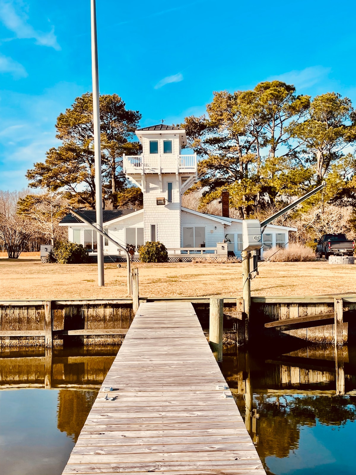 Nestled in a peaceful bend of the Pasquotank River this magical setting will have you feeling the rhythm of the river & its golden hour glow! It boasts a massive waterfront screened porch with its own fireplace & dining area. A private dock lounge area too! Carefully curated antiques tell a story of timeless elegance blended in modern luxury ideal for peaceful mornings & restful nights. Enjoy fishing, kayaking, boating, a romantic weekend, stargazing, creative retreat, or a fun family getaway!