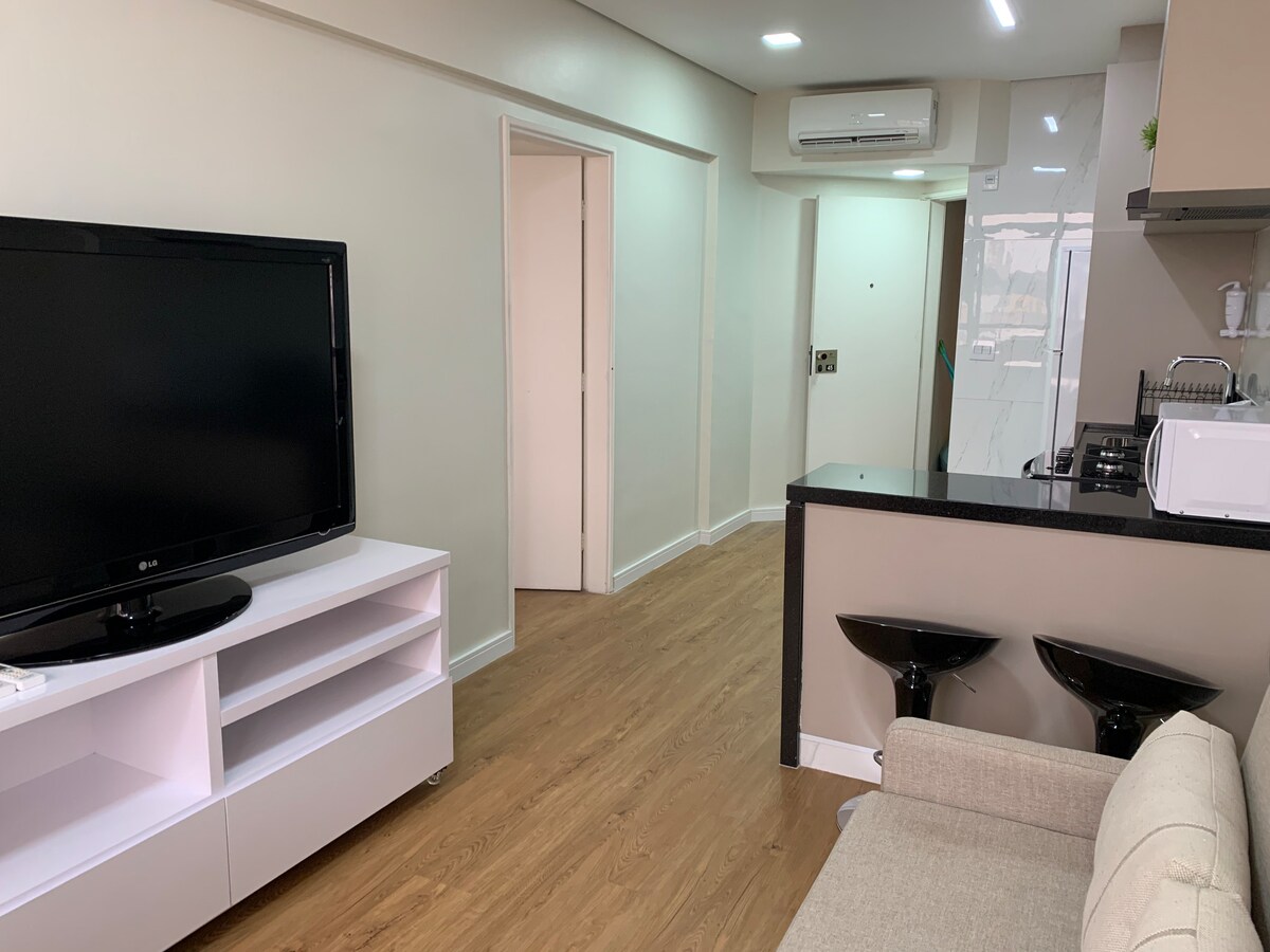 Flat yang tenang dan berlokasi strategis, luas dan nyaman, berperabot lengkap, dengan internet, TV kabel, AC, microwave, kulkas dengan freezer, oven, pembuat sandwich, kompor 3 burner, pengering rambut, kipas angin, pencahayaan yang sangat baik, jendela anti kebisingan, kondominium lengkap: kolam renang, pusat kebugaran, ruang olahraga dan olahraga, sauna, lintasan joging, minimarket, resepsionis, laundry, segala sesuatu untuk kenyamanan dan kemudahan Anda di satu tempat. Tamu sering kembali. Selamat datang